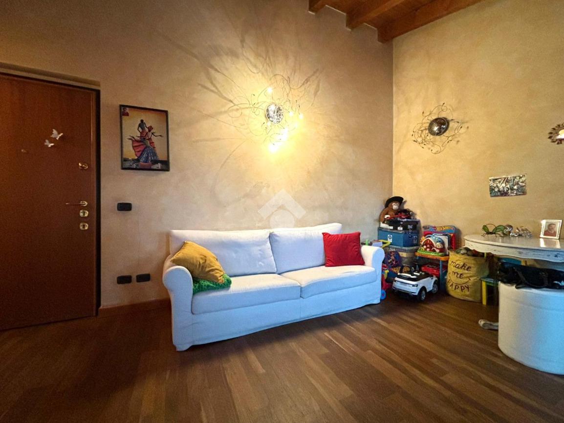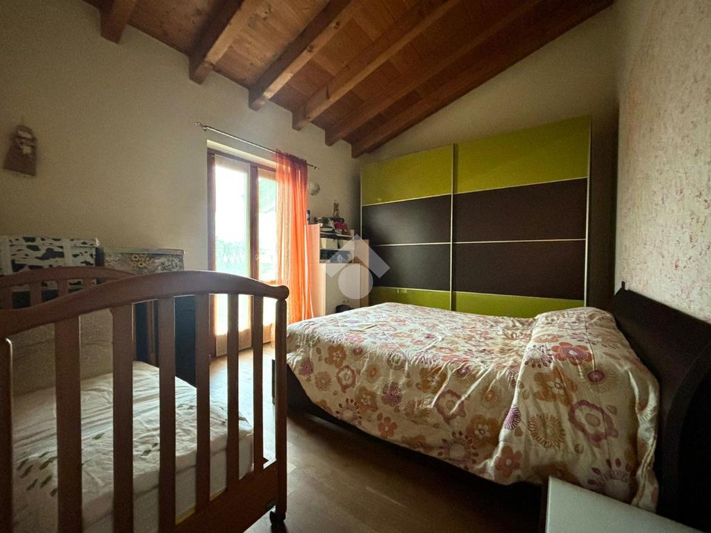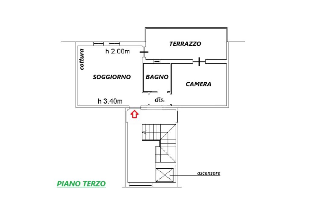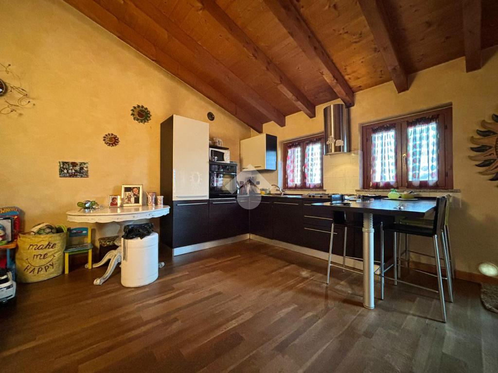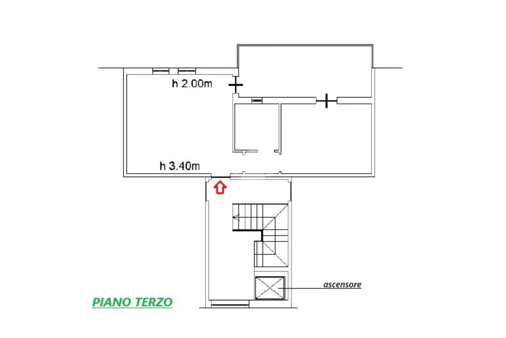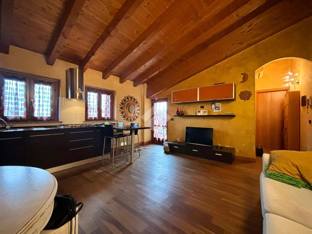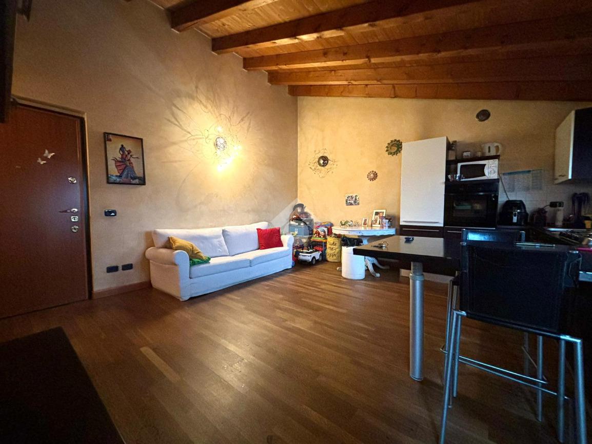L'abitazione, di 51 mq, si trova al terzo ed ultimo piano della palazzina, edificata nel 2007 e dotata di ascensore. L'ingresso si apre sulla zona giorno, composta da un unico locale open space con cucina a vista. Il disimpegno serve la zona notte, composta da bagno con doccia e camera da letto matrimoniale. Caratteristica principale di questa soluzione è il soffitto mansardato in travi a vista in legno.