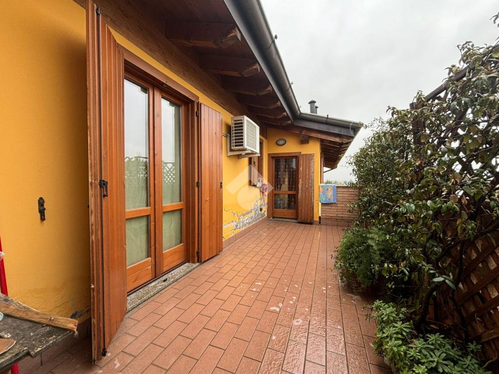 Sia dalla zona giorno sia dalla camera da letto si accede al terrazzo di 14 mq con esposizione a sud.