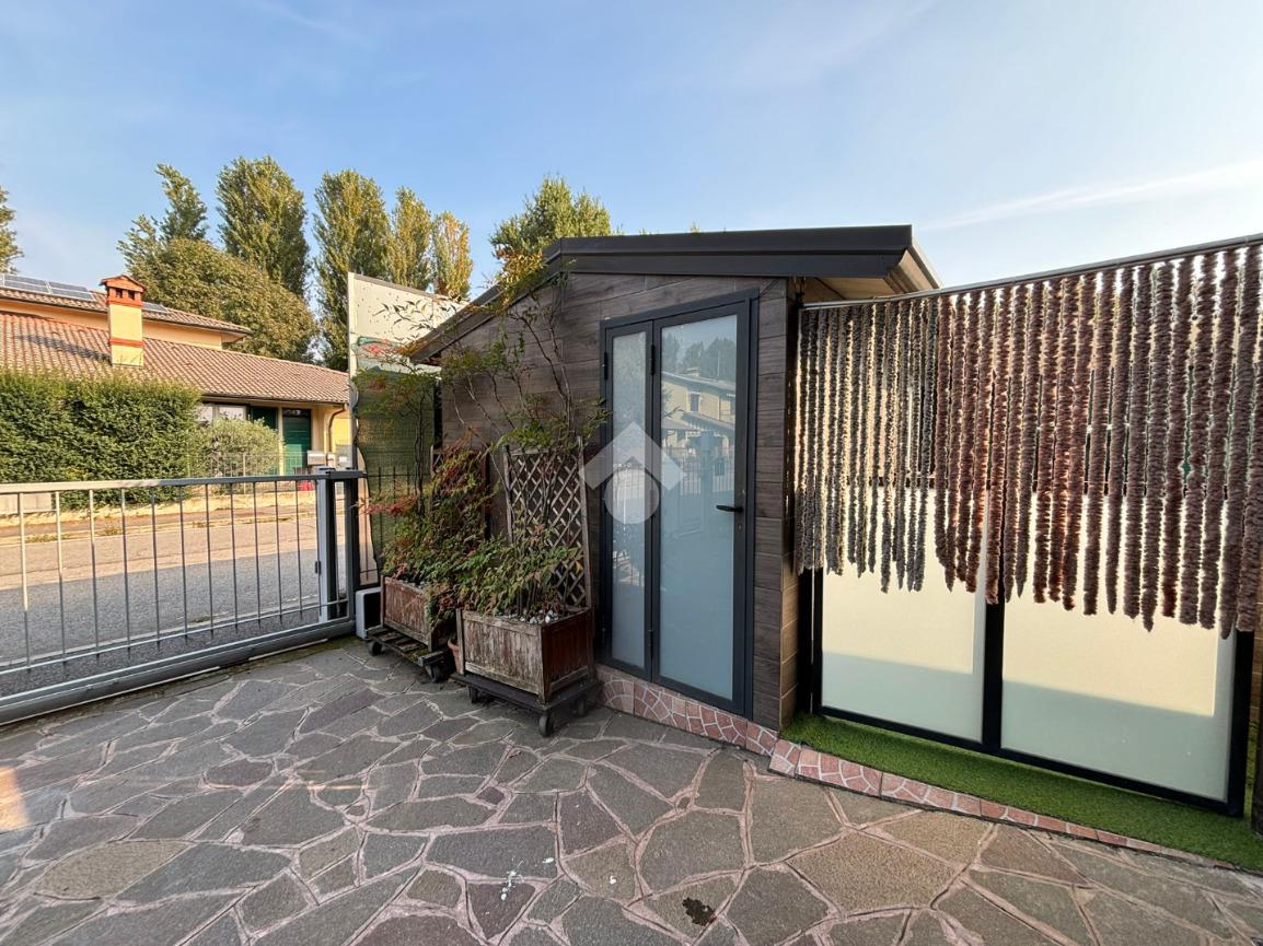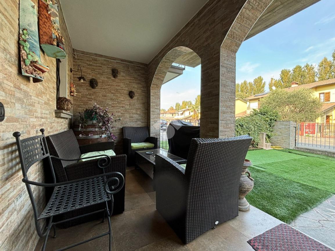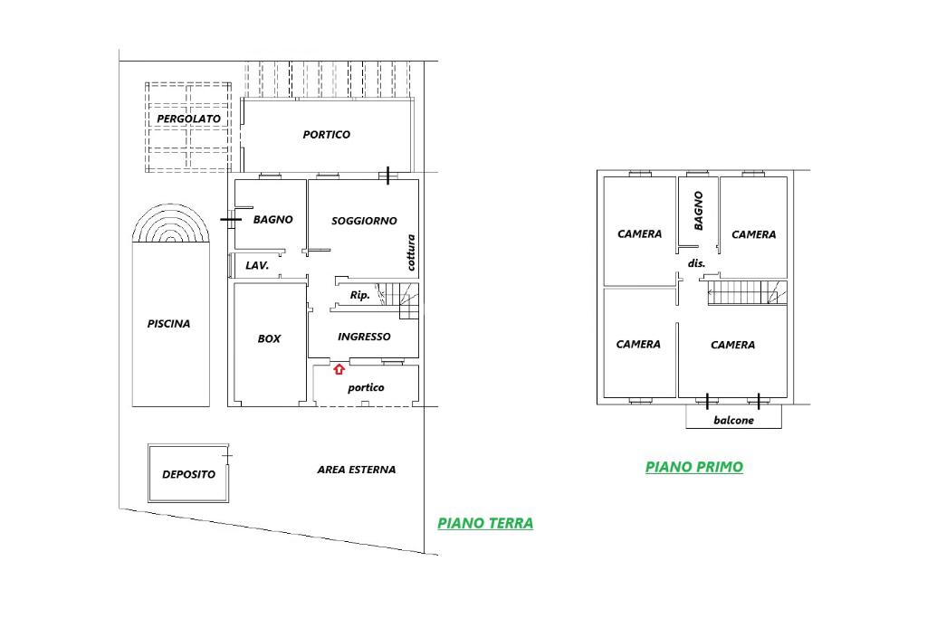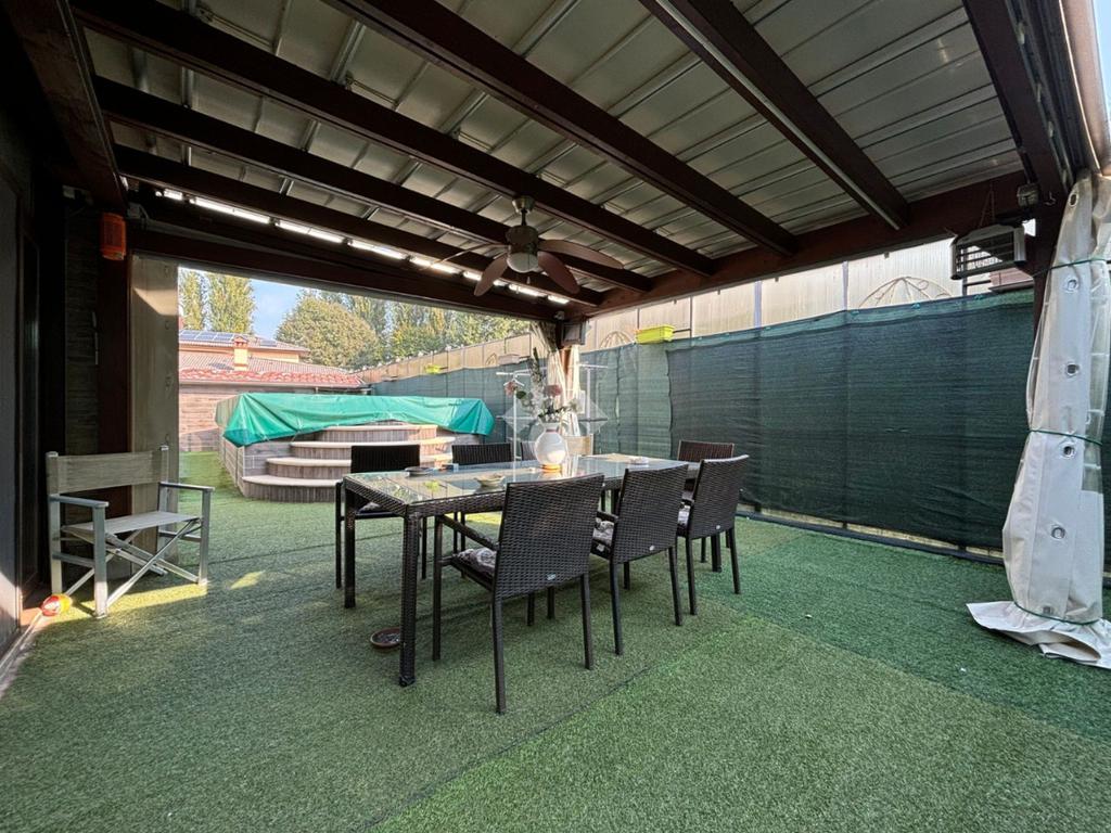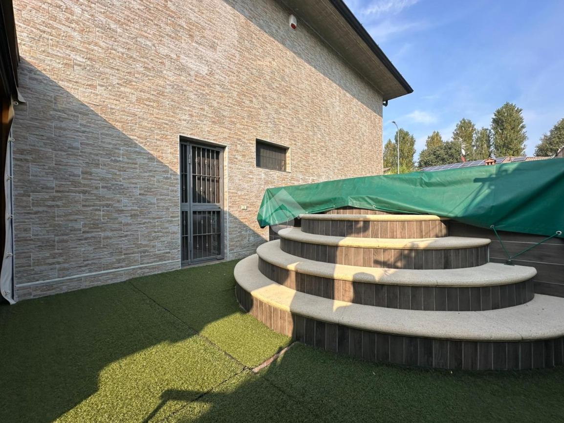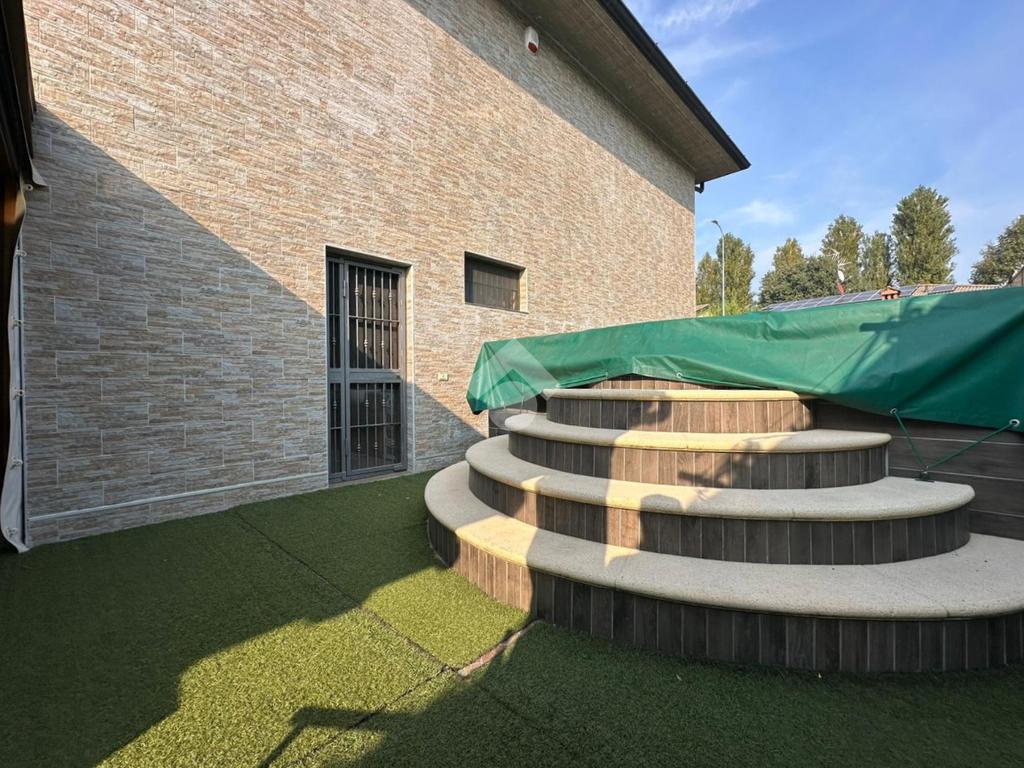 Fiore all'occhiello di questa soluzione è lo spazio esterno di 168 mq. L'area esterna è stata sapientemente sfruttata dagli attuali proprietari, con l'aggiunta di un pergolato di 25 mq, piscina in muratura di 25 mq e deposito attrezzi di 9 mq.