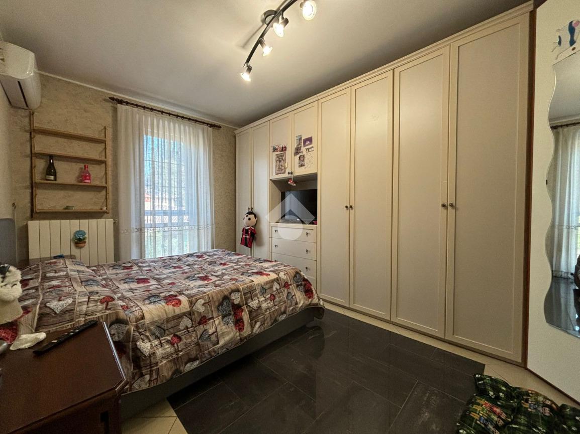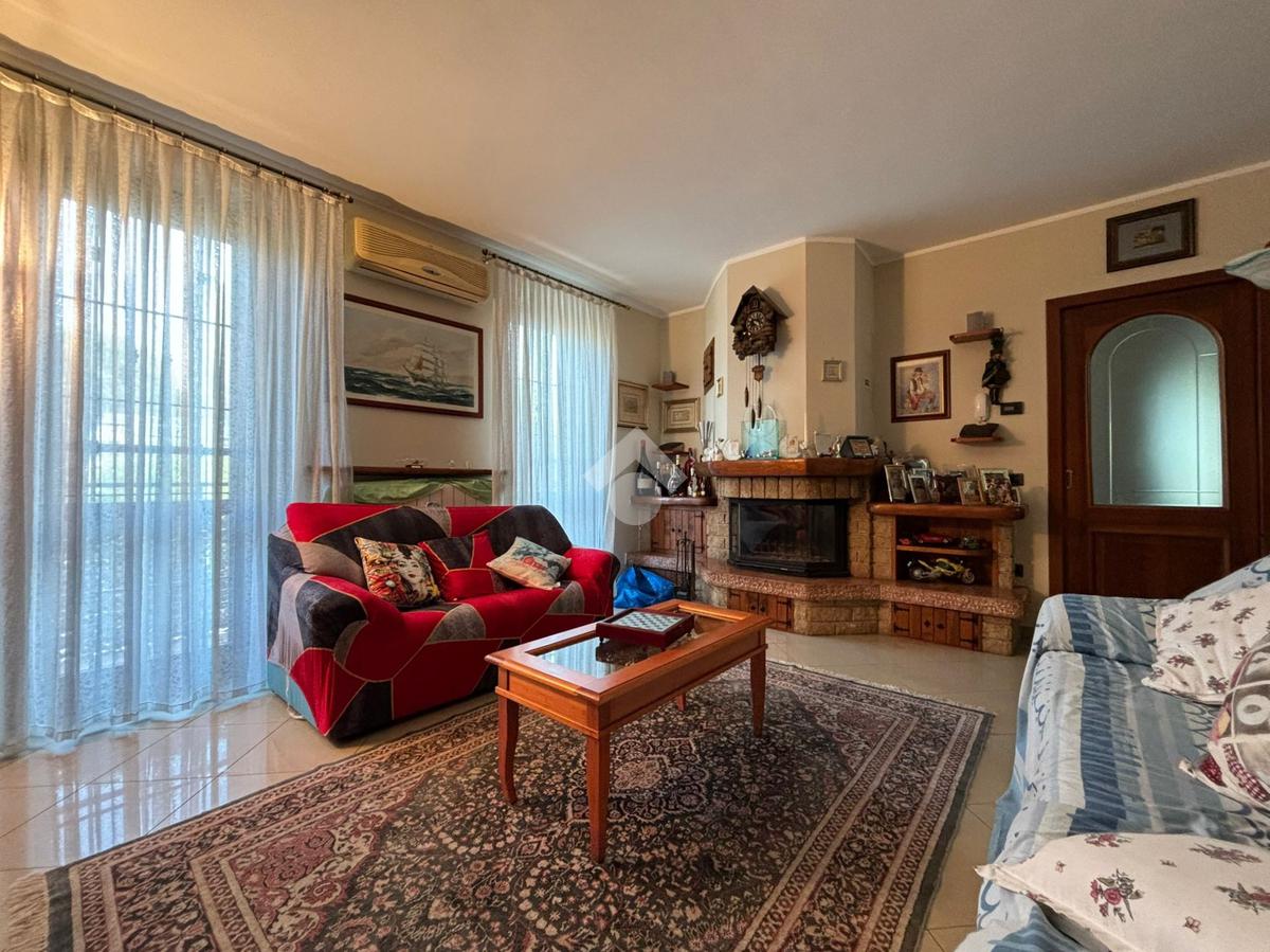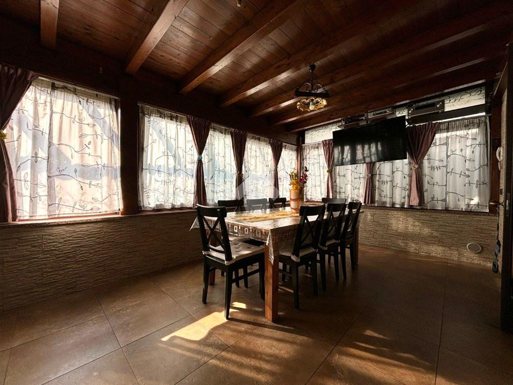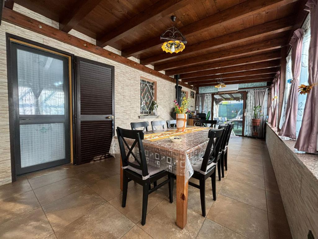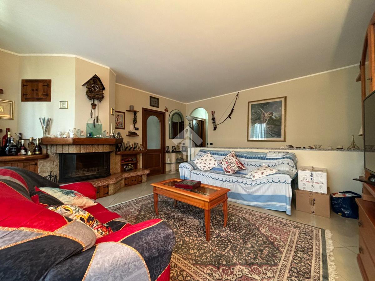 L'abitazione, di 155 mq, si sviluppa su due livelli. Al piano terra troviamo l'ingresso, il soggiorno con angolo cottura, lavanderia e bagno con doccia. Dal soggiorno si ha accesso ad un portico chiuso di 26 mq, dotato di aria condizionata e riscaldato da stufa. La zona notte si trova al piano primo, suddiviso in quattro camere, di cui una con camino e ad oggi usata come seconda area relax, e bagno con vasca. Dalla stanza relax si ha accesso al balcone di 4,60 mq.