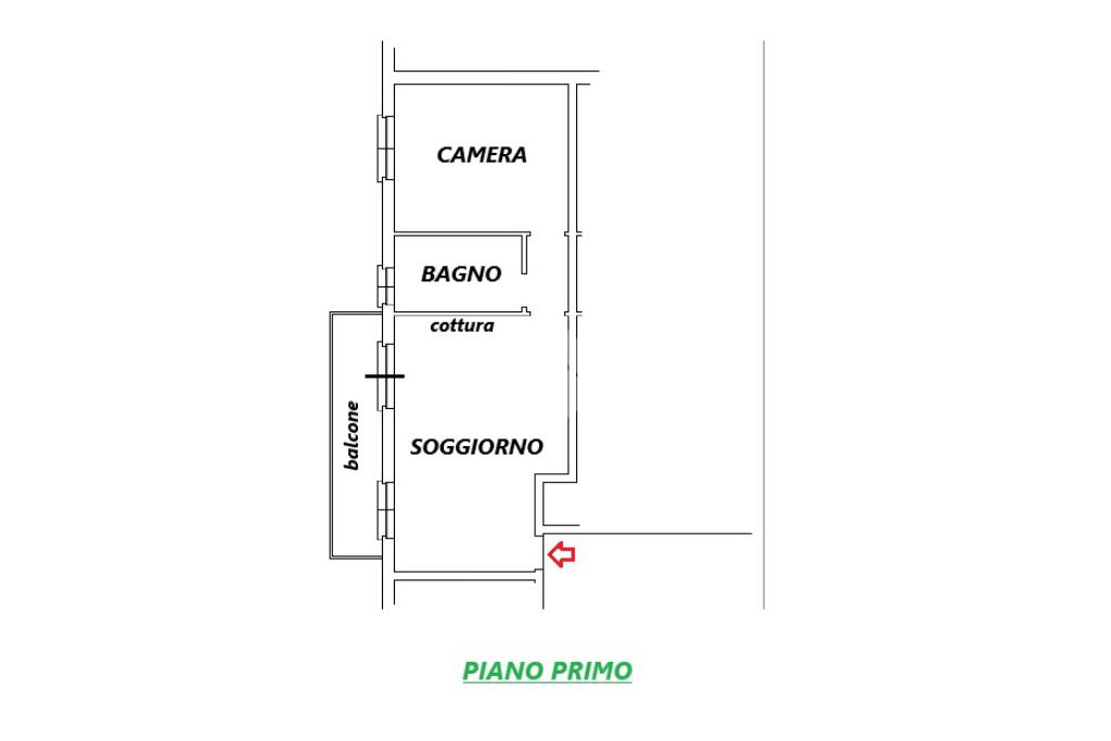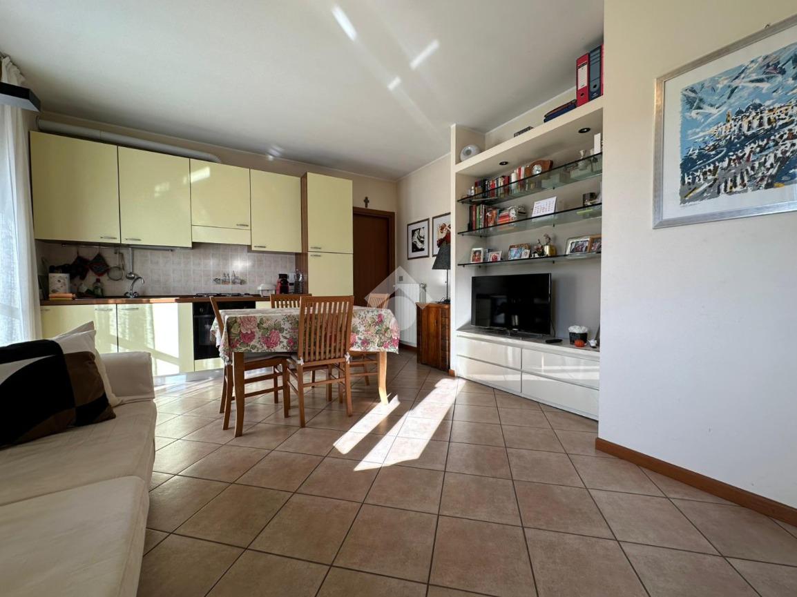 L'appartamento, di circa 50 mq, si trova al primo piano della palazzina, edificata nel 2005. L'ingresso si apre sulla zona giorno, composta da un unico locale open space con angolo cottura. Il disimpegno serve la zona notte, composta da bagno con doccia e camera da letto matrimoniale. Dal soggiorno si ha accesso al balcone di quasi 7 mq con esposizione a ovest, con tende da sole elettriche.