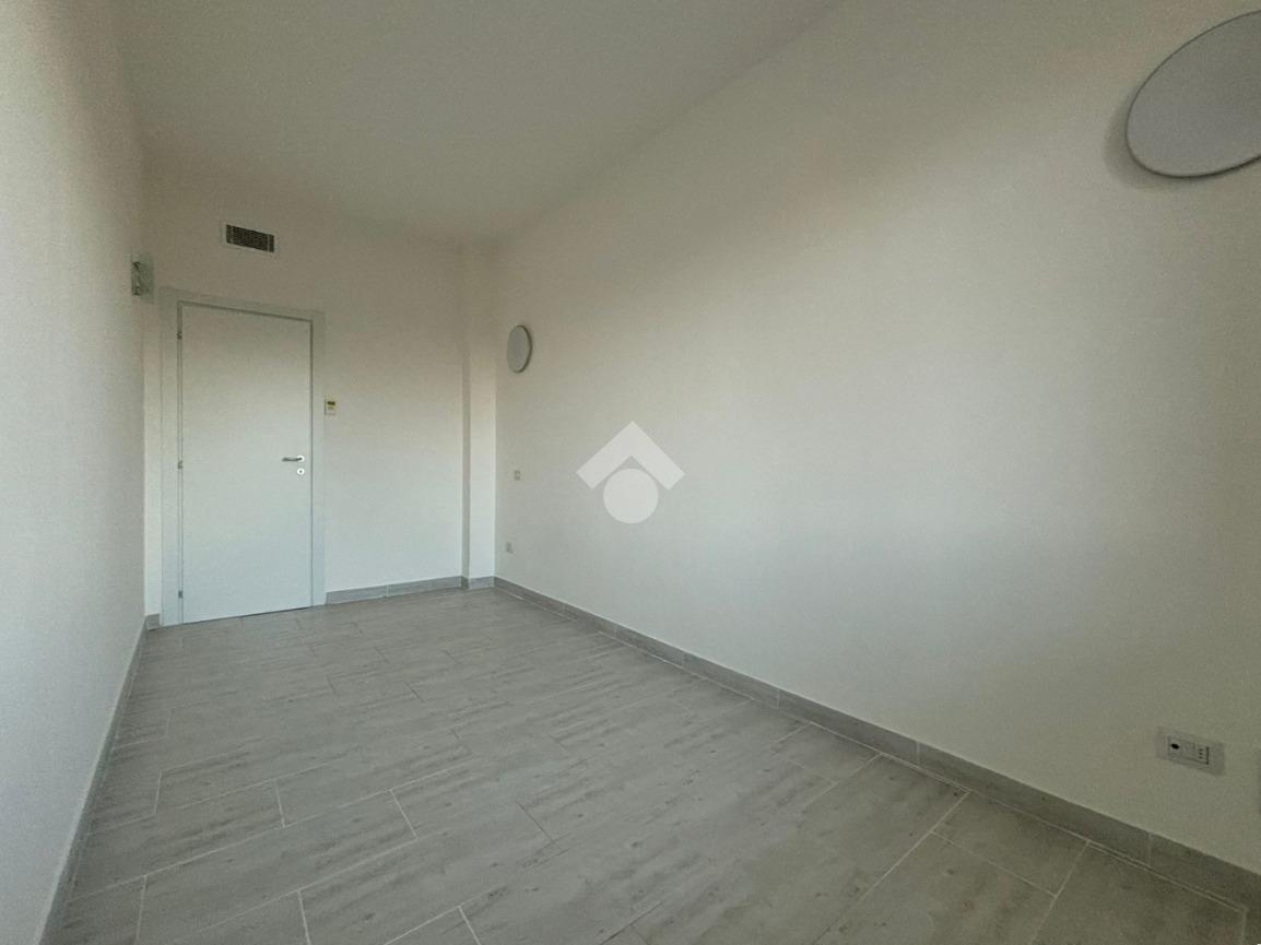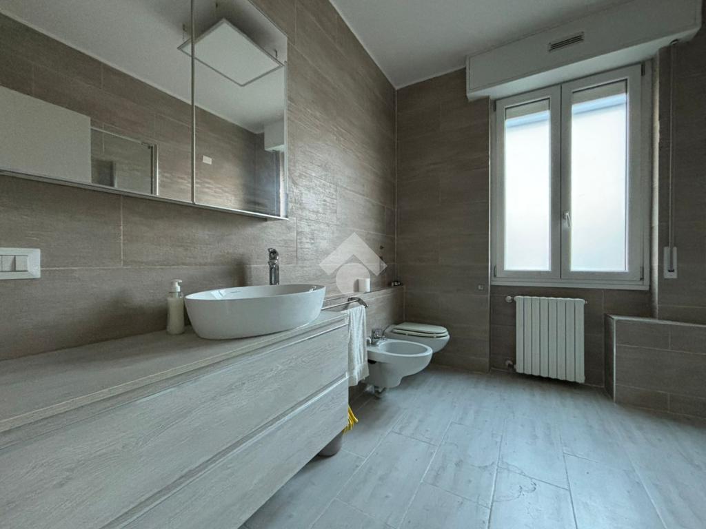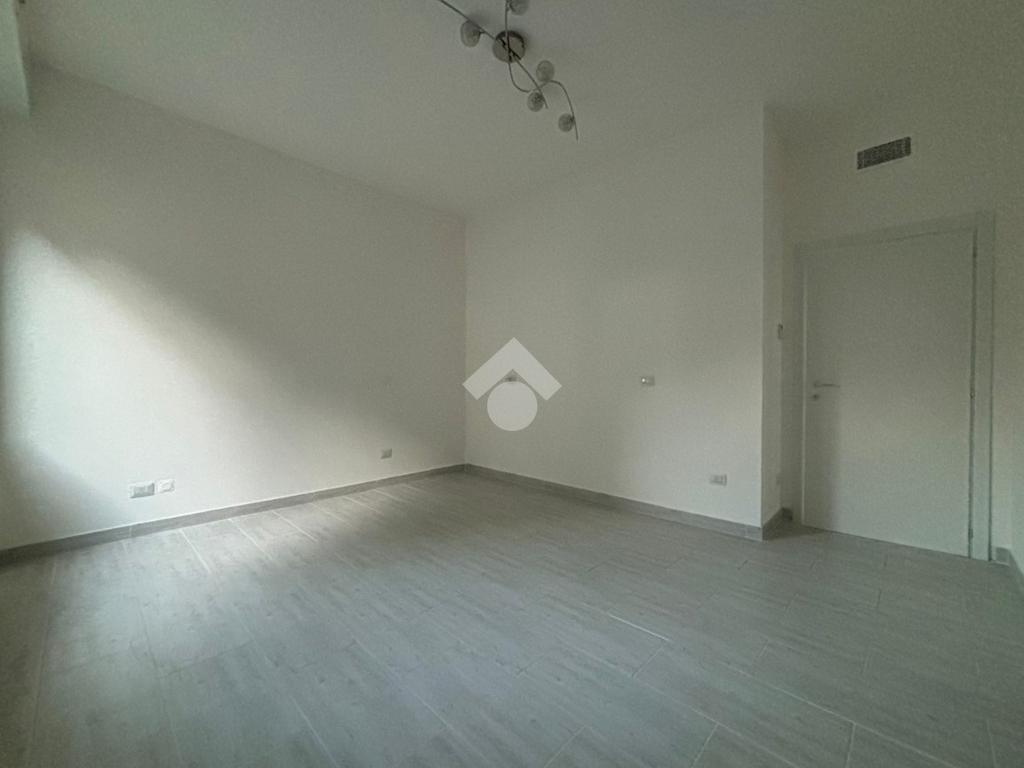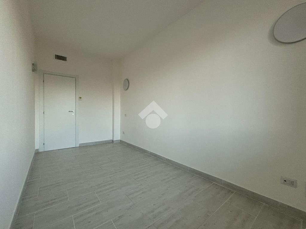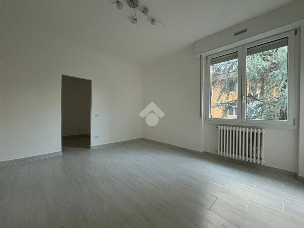 L'appartamento, di 123 mq, si trova al primo piano della palazzina ed è stato recentemente completamente ristrutturato. L'ingresso si apre sulla zona giorno, composta sa un ampio soggiorno e la cucina abitabile. Il disimpegno serve la zona notte, composta da tre camere da letto, di cui una con ripostiglio ad uso cabina armadio, e bagno con doccia. Dal soggiorno e da una delle tre camere da letto si ha accesso al terrazzo di 18 mq, con esposizione a est. Il disimpegno dispone di un secondo balcone di quasi 4 mq.