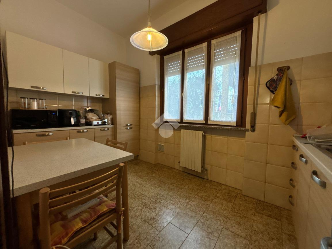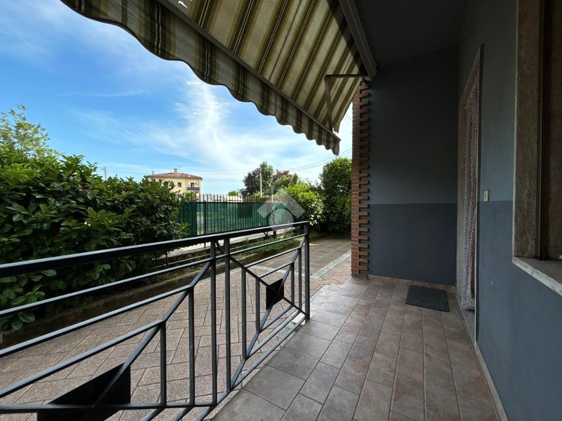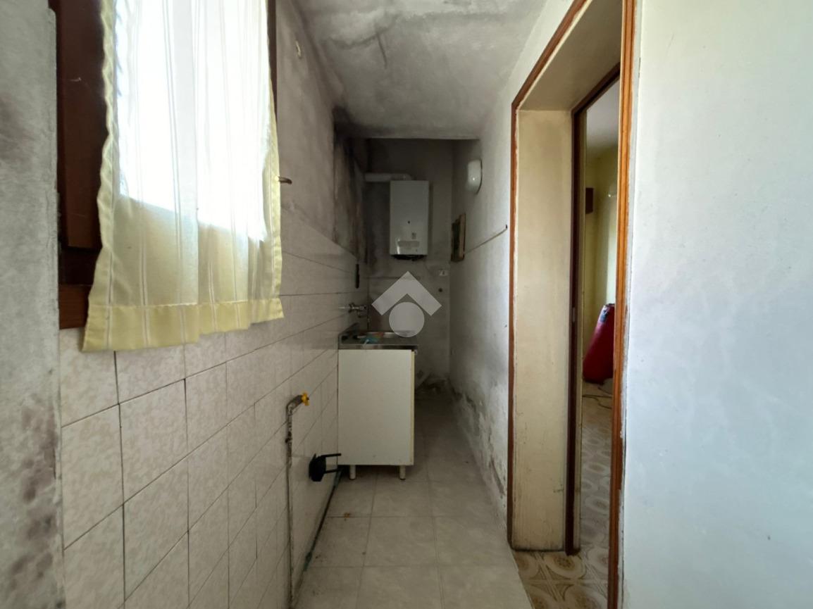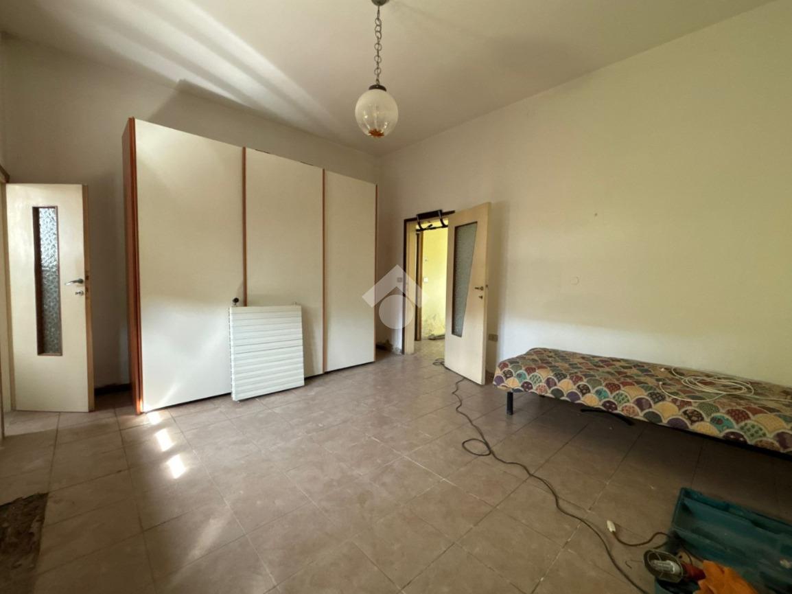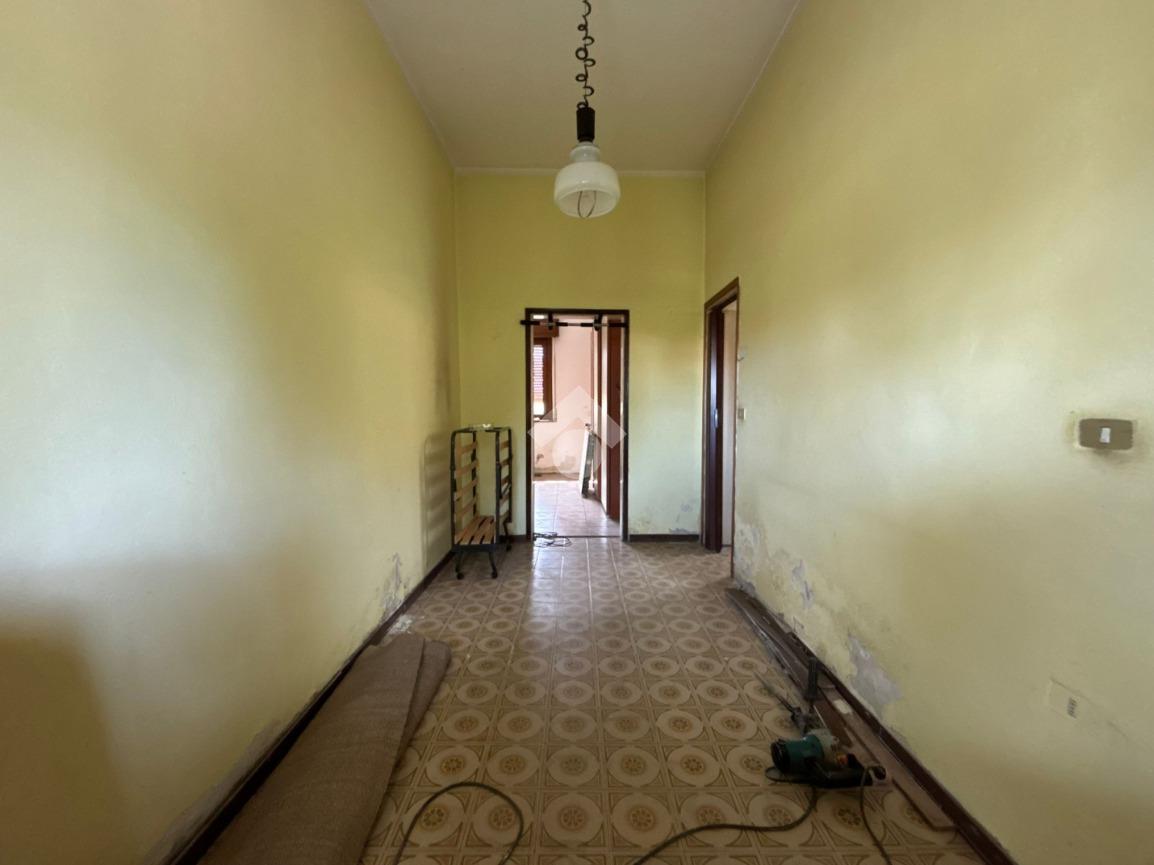 Il piano terra, di 107 mq, attualmente è stato suddiviso in un appartamento di due locali e servizi con cucina abitabile e un ulteriore appartamento monolocale con locale d'ingresso e bagno. L'appartamento bilocale dispone di portico d'ingresso di 5,60 mq.