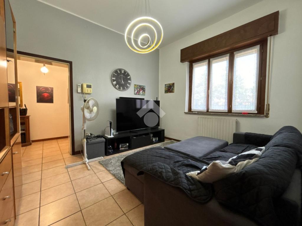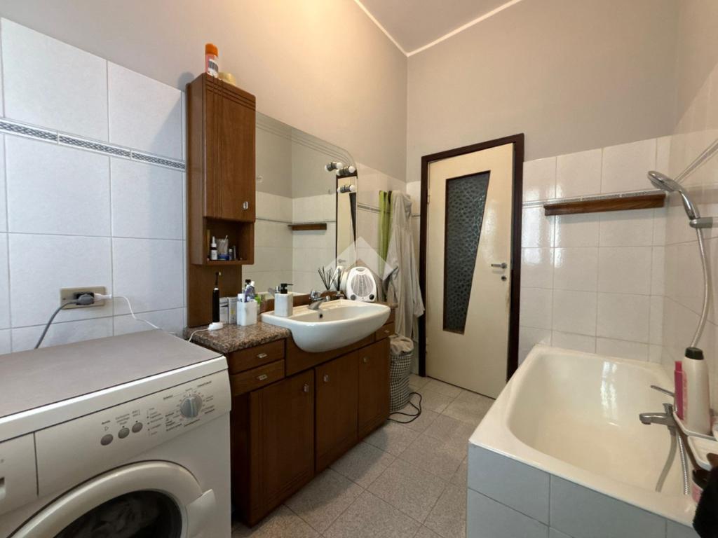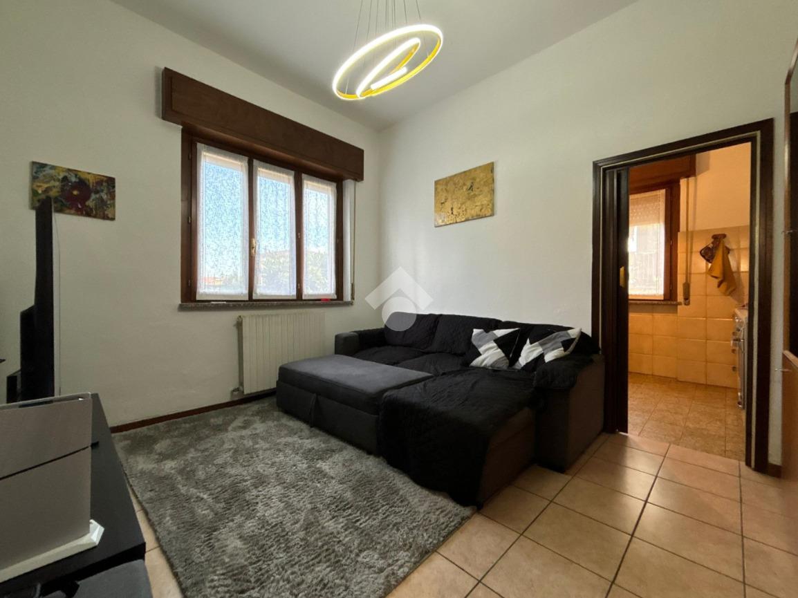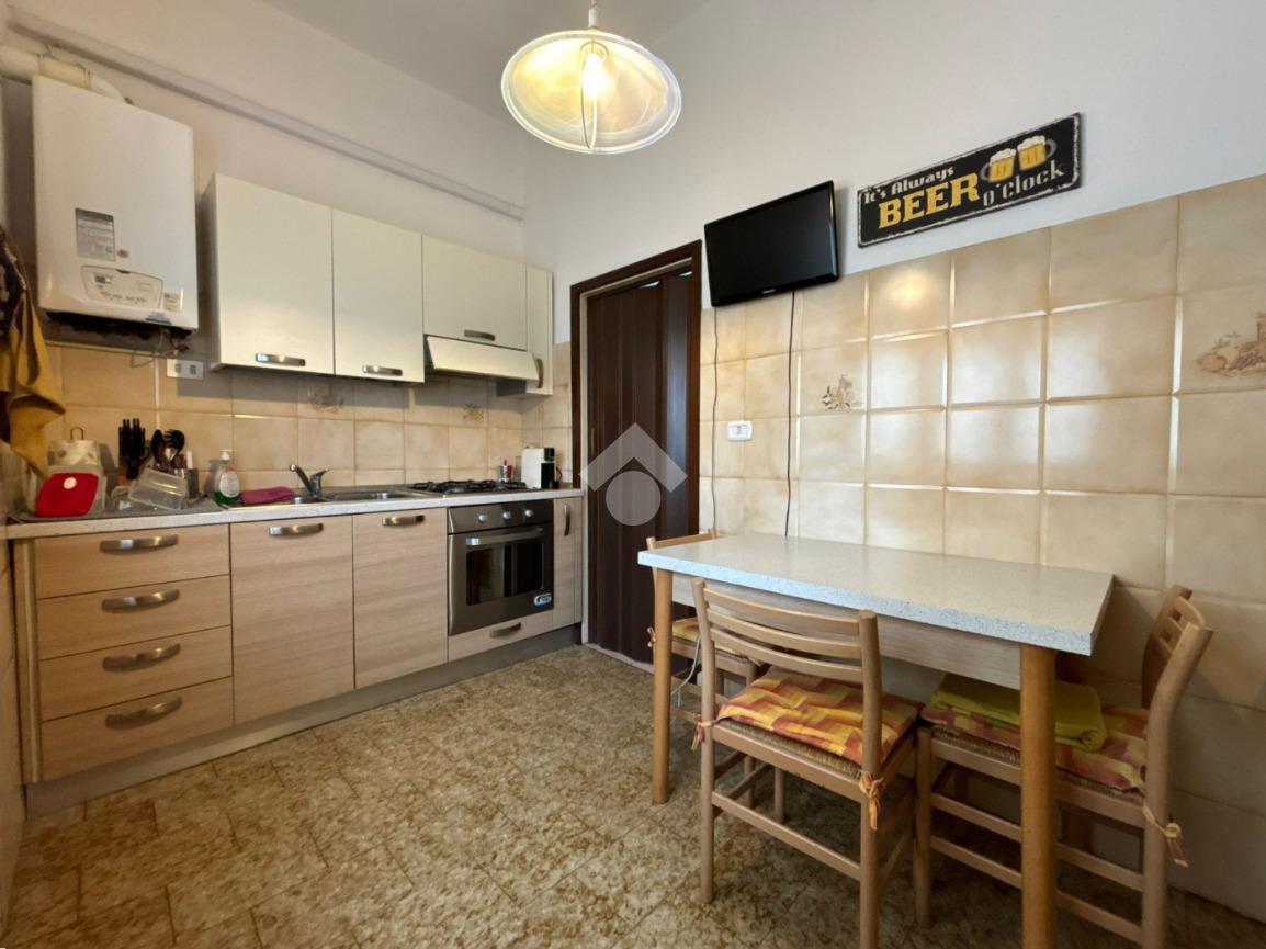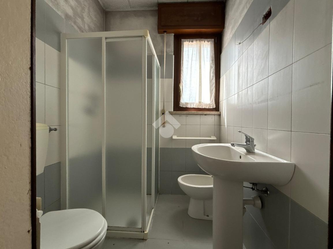 Il piano terra, di 107 mq, attualmente è stato suddiviso in un appartamento di due locali e servizi con cucina abitabile e un ulteriore appartamento monolocale con locale d'ingresso e bagno. L'appartamento bilocale dispone di portico d'ingresso di 5,60 mq.