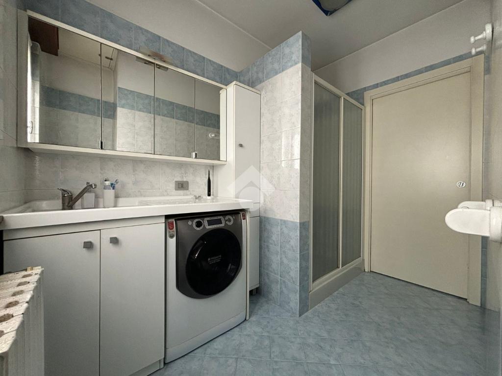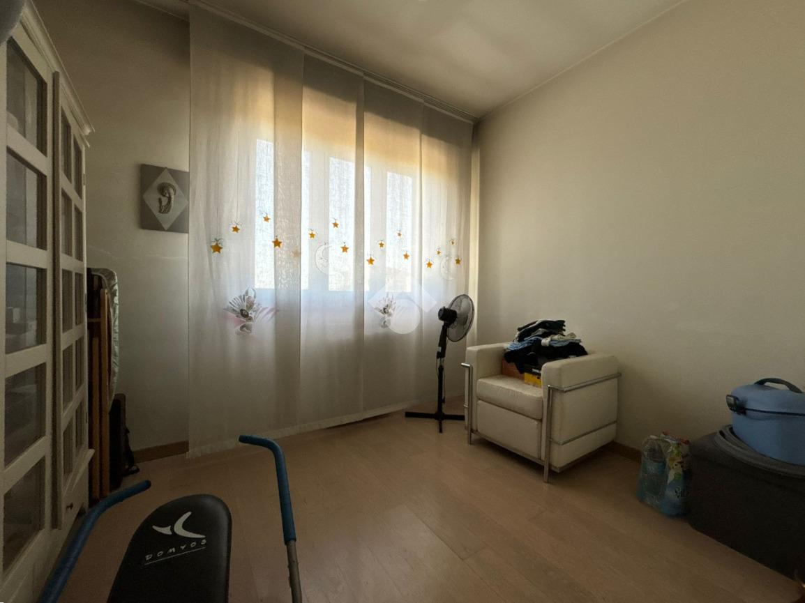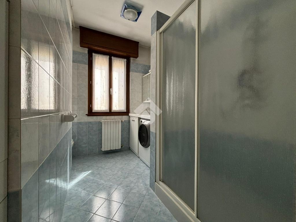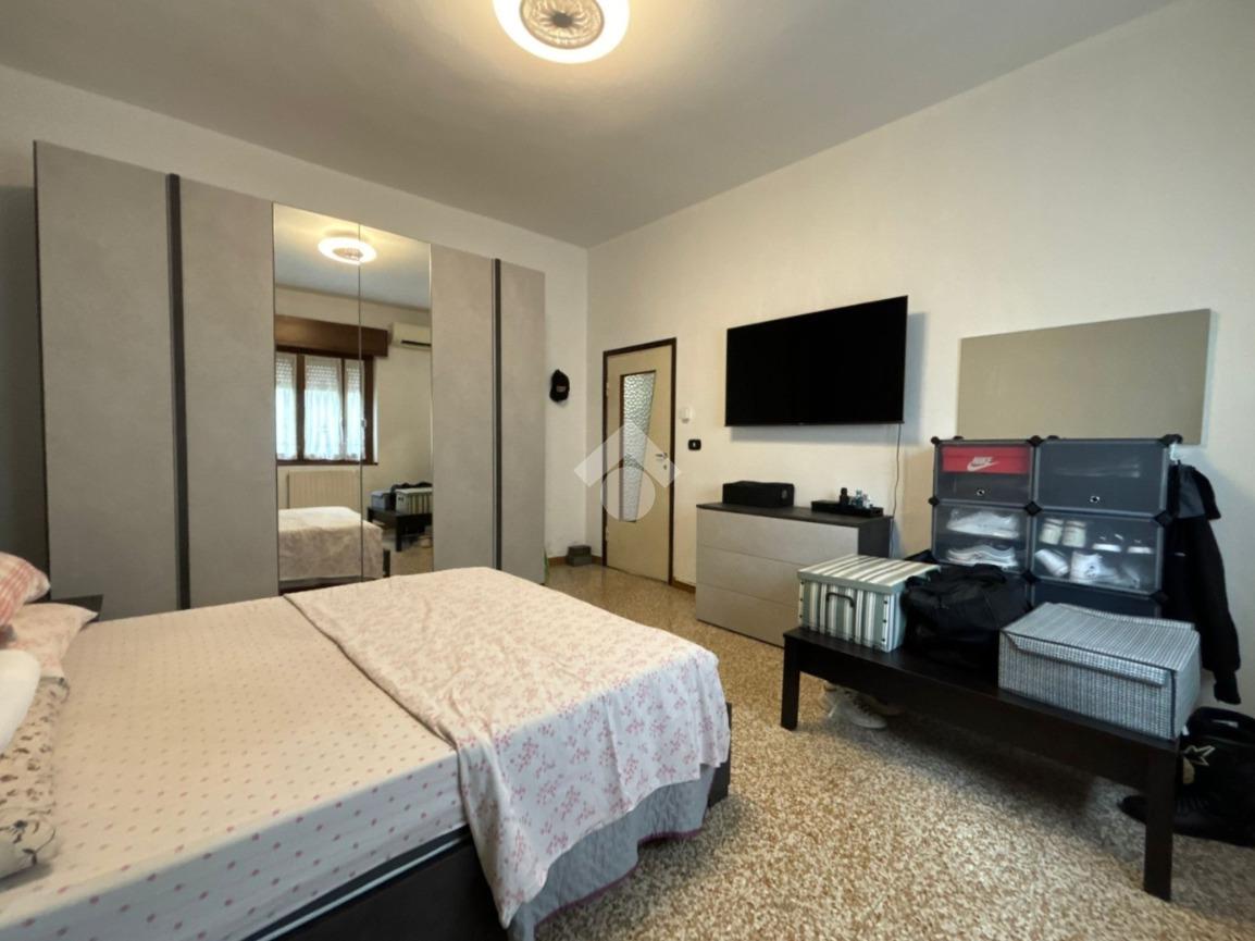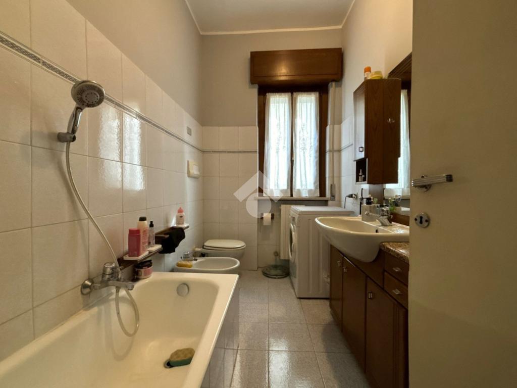 Il piano terra, di 107 mq, attualmente è stato suddiviso in un appartamento di due locali e servizi con cucina abitabile e un ulteriore appartamento monolocale con locale d'ingresso e bagno. L'appartamento bilocale dispone di portico d'ingresso di 5,60 mq.