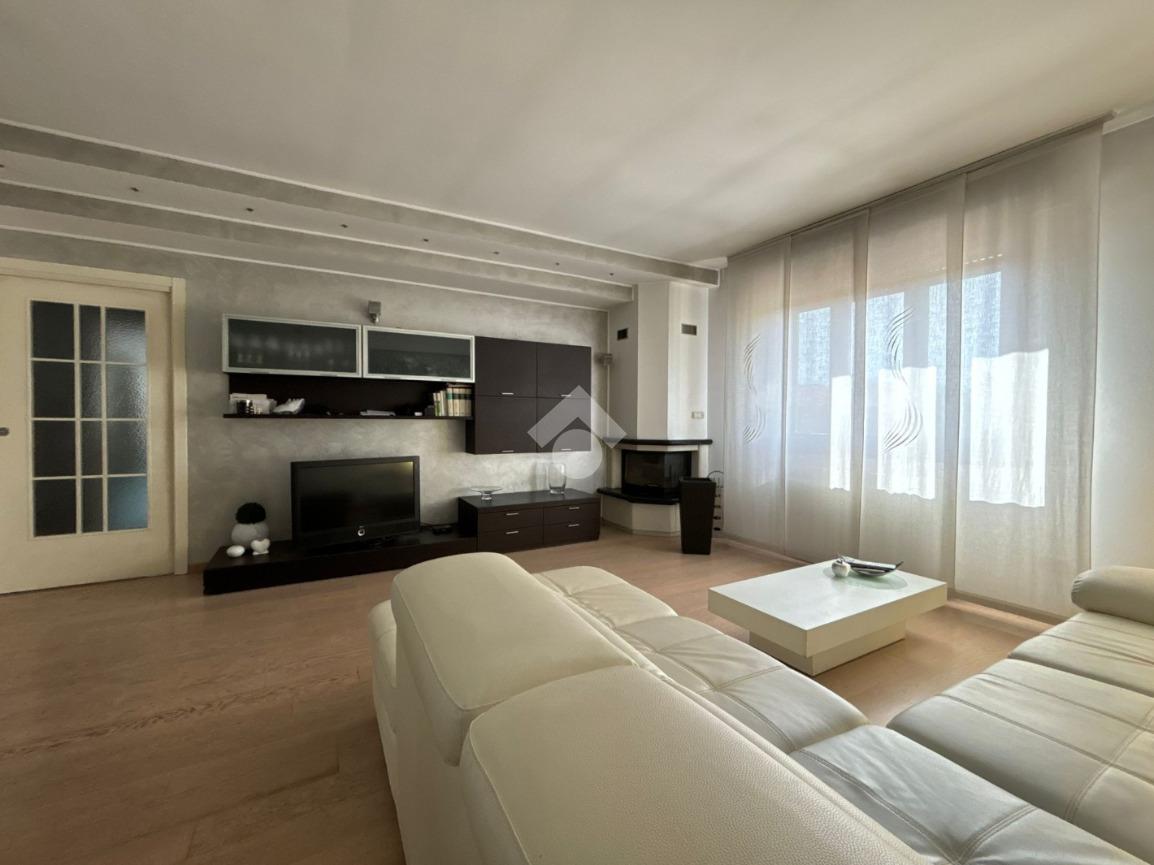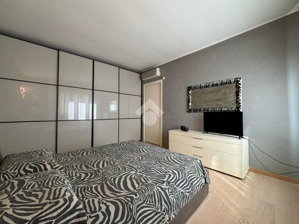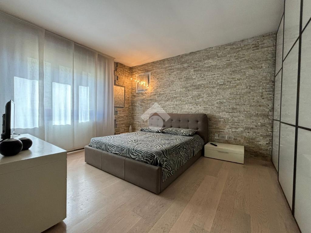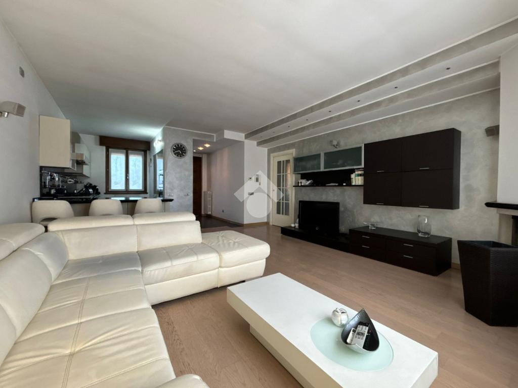 Al piano primo troviamo il primo appartamento di 3 locali e doppi servizi ed è raggiungibile attraverso una scala interna. L'abitazione, di 103 mq, si compone di ampia zona giorno open space con angolo cottura, disimpegno, due camere da letto e due bagni, il primo con doccia e il secondo con vasca idromassaggio. L'appartamento dispone di balcone d'ingresso.