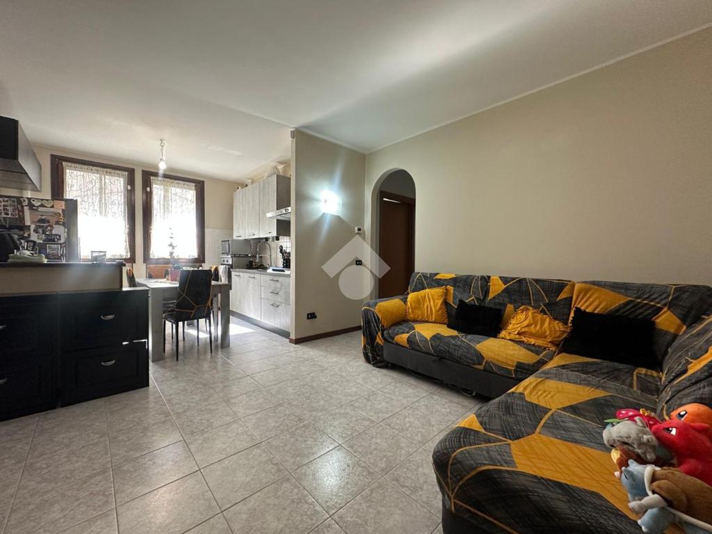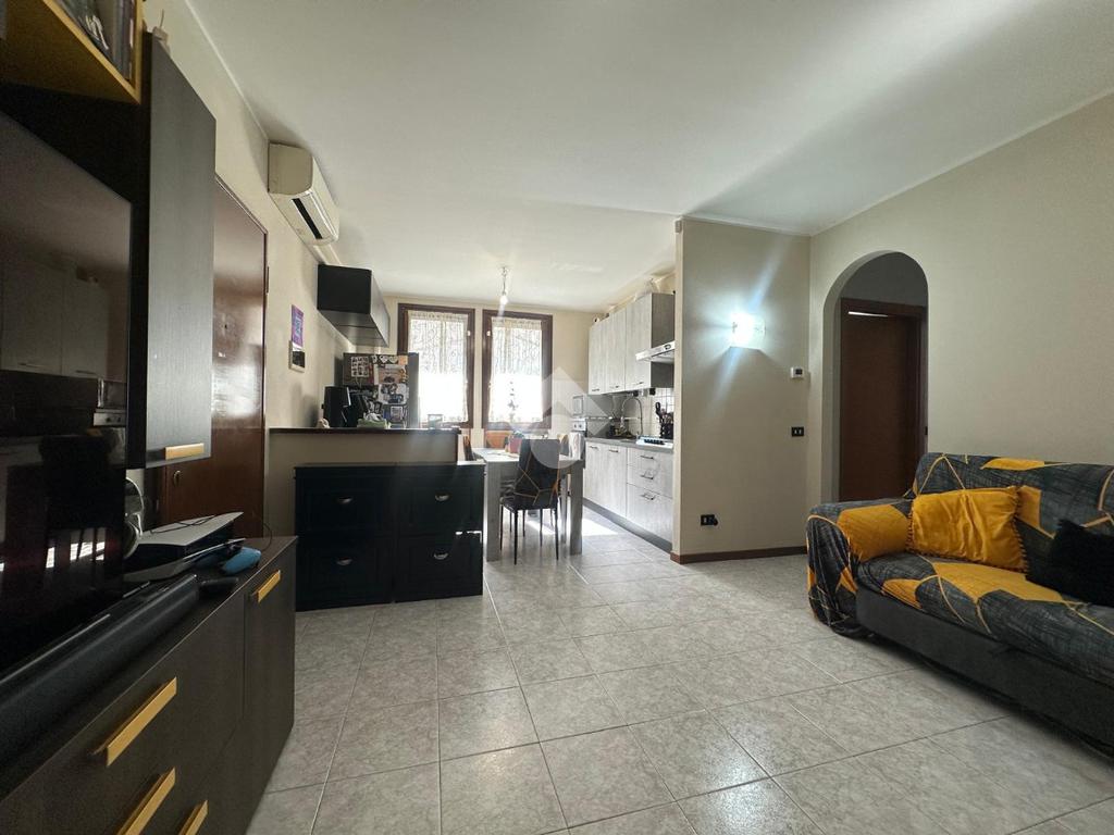 RIVOLTA D’ADDA: In verdeggiante e riservato contesto condominiale, a pochi passi dal centro paese e dalle scuole, proponiamo in vendita appartamento di tre locali e doppi servizi con cantina rifinita e box.