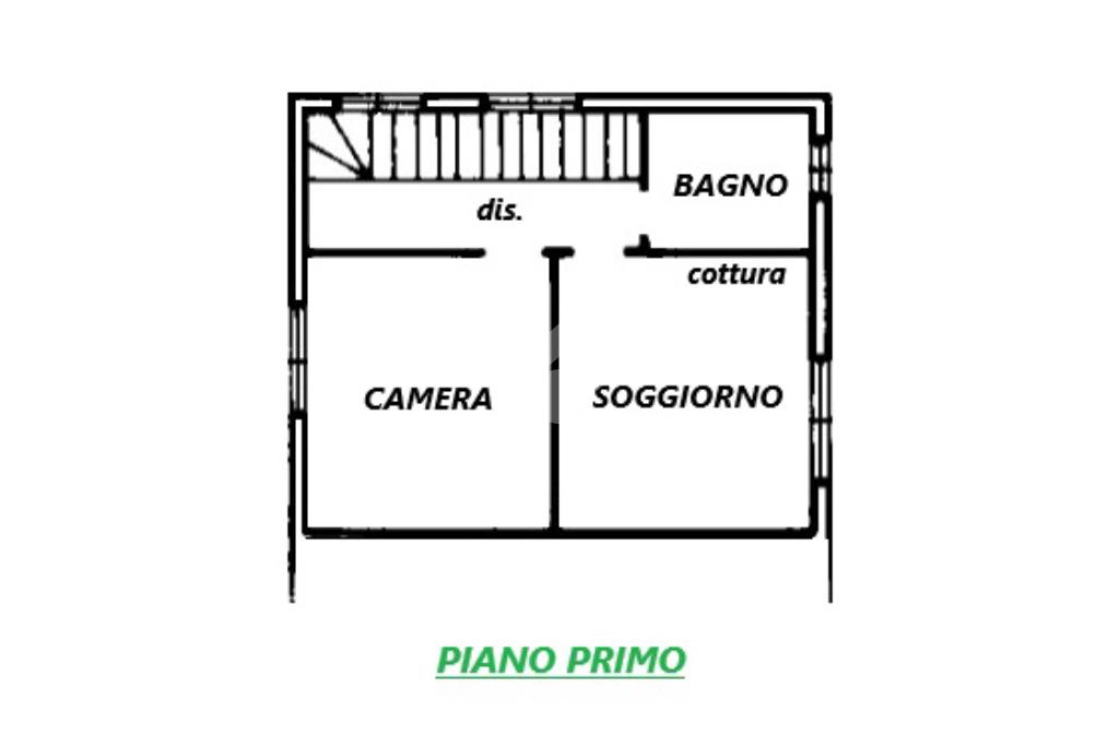 L'abitazione ha ingresso al piano terra, tramite la scala interna si accede al primo piano suddiviso in disimpegno, soggiorno con angolo cottura, camera da letto e bagno con doccia.