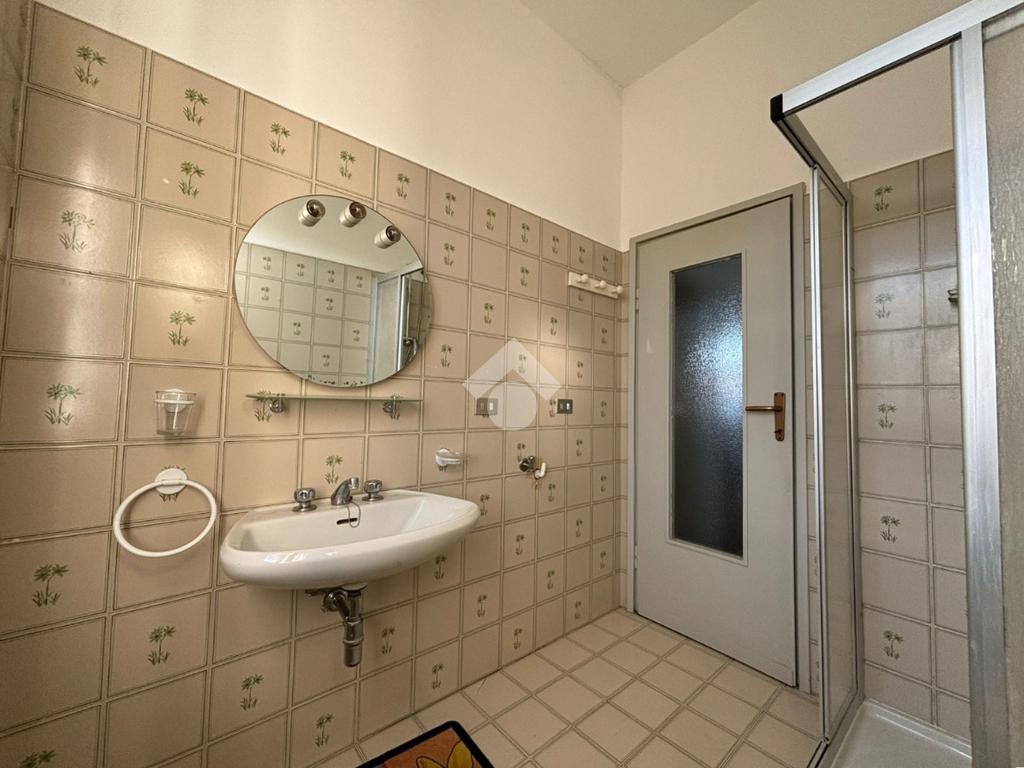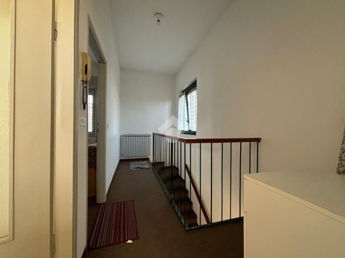 L'appartamento, di 44 mq, si trova al primo ed ultimo piano del complesso, composto per la maggior parte da locali commerciali, ed ha ingresso indipendente.