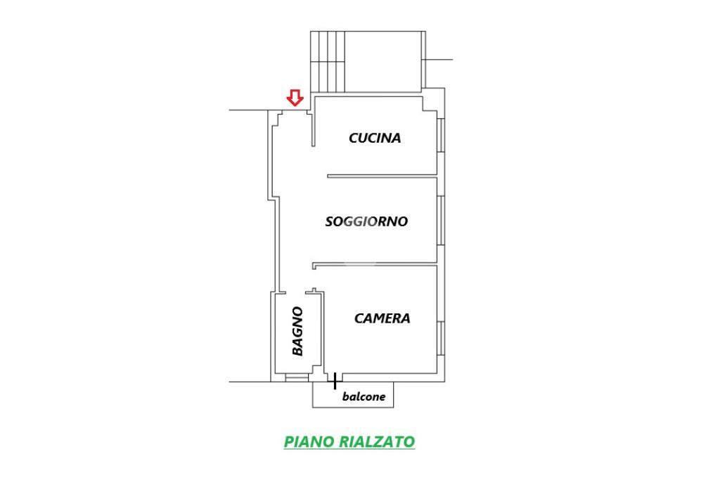 L'abitazione, di 61 mq, si trova al piano rialzato della palazzina. L'ingresso si apre sulla zona giorno, composta da soggiorno con cucina a vista. Dal soggiorni si ha accesso alla zona notte, suddivisa in camera da letto e bagno con doccia. Dalla camera si ha accesso al balcone con esposizione a sud.
