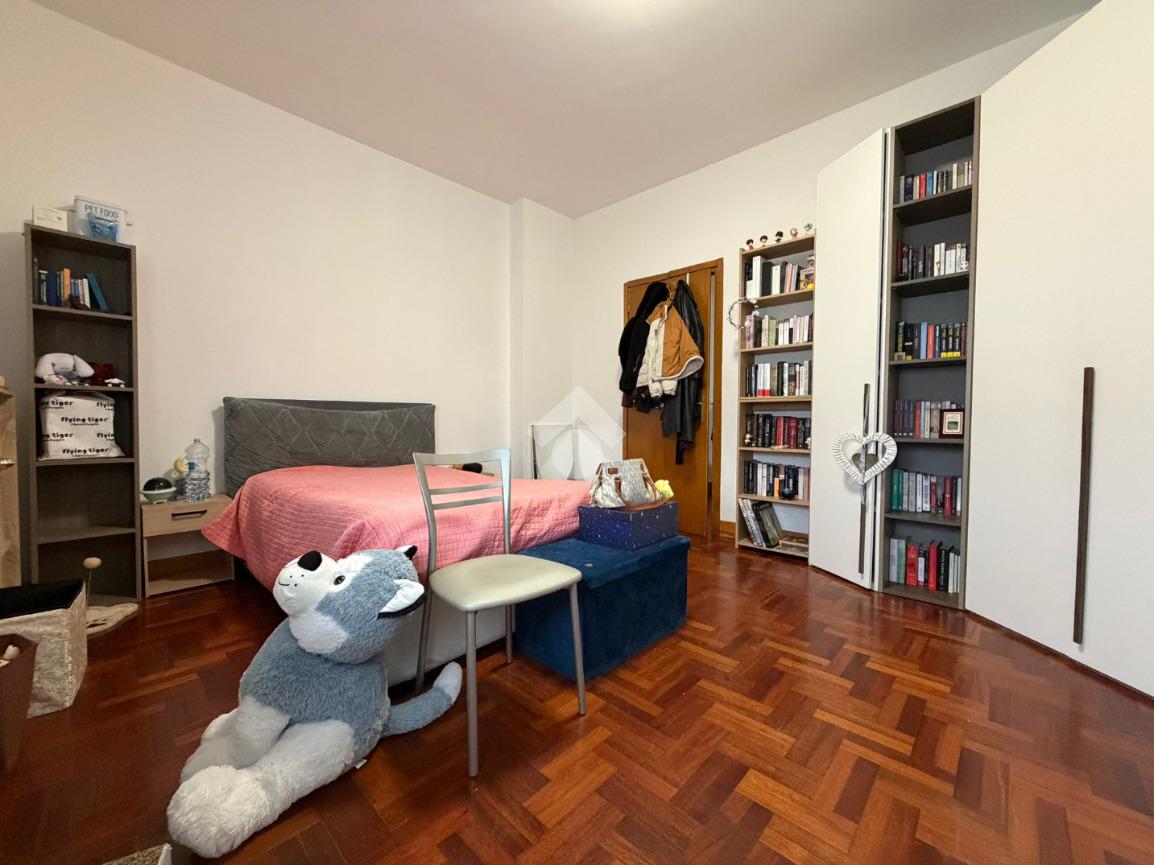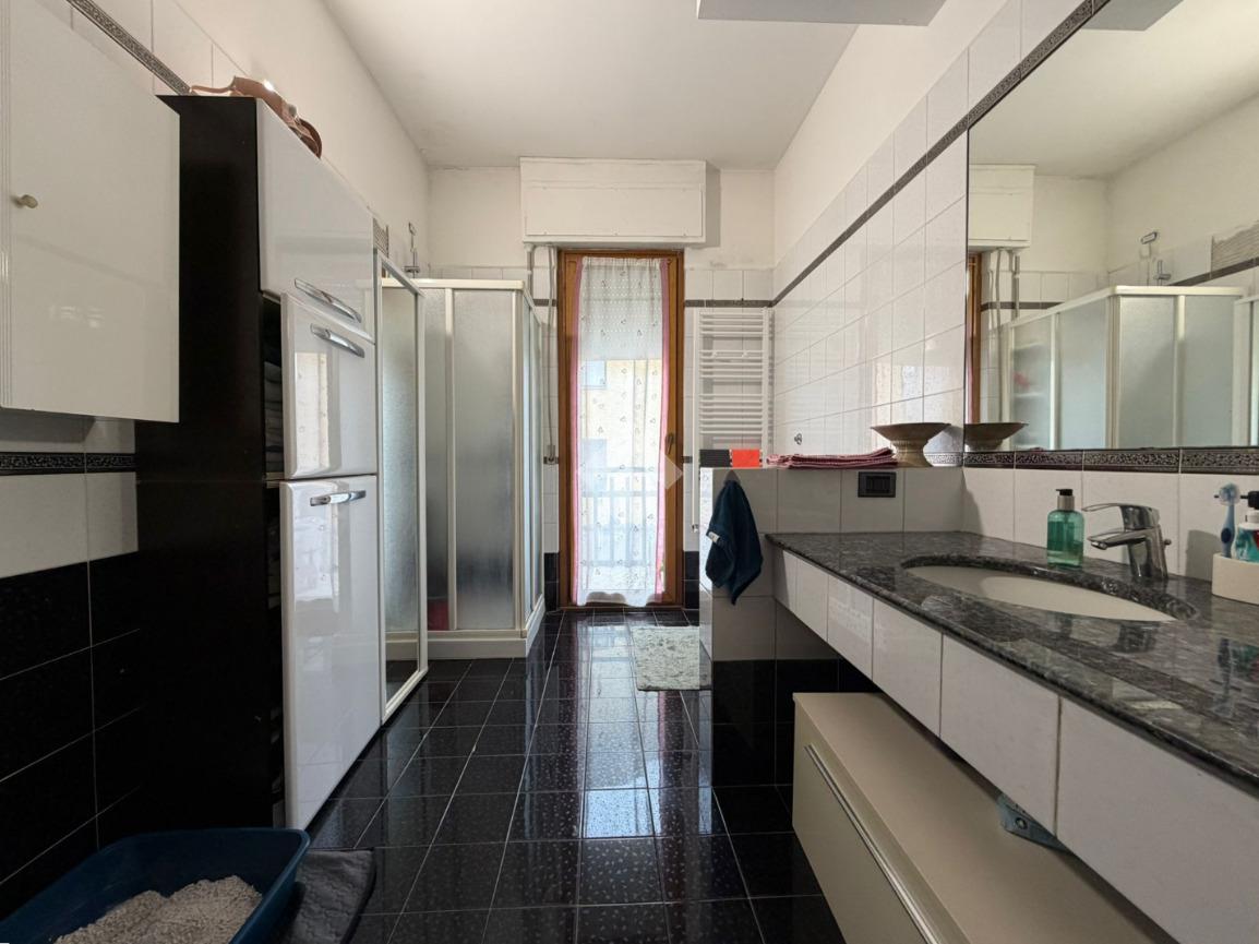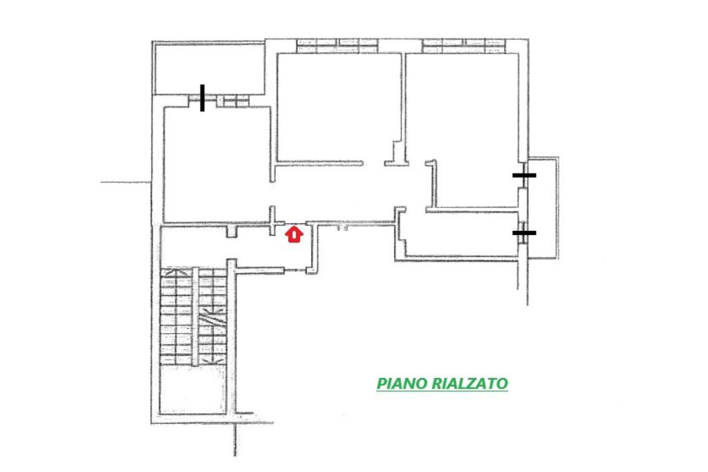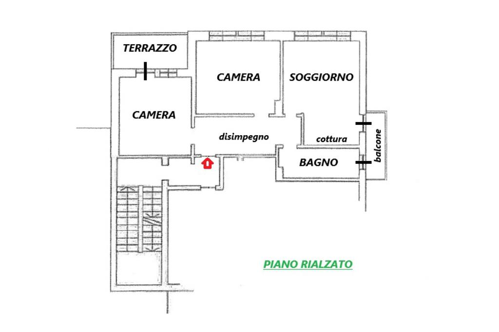 L'abitazione, di 89 mq, si trova al piano rialzato della palazzina. L'ingresso si apre sul disimpegno, che serve tutte le stanze della casa. L'abitazione si suddivide in soggiorno con angolo cottura, due camere da letto e bagno con doccia. Dalla zona giorno e dal bagno si ha accesso al balcon con esposizione a nord, mentre da una delle due camere da letto si ha accesso al terrazzo di 7 mq esposto a ovest.