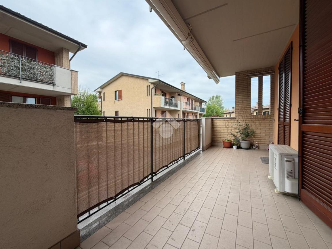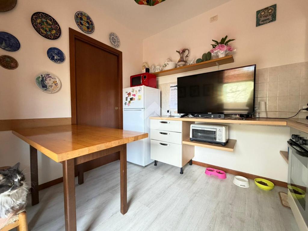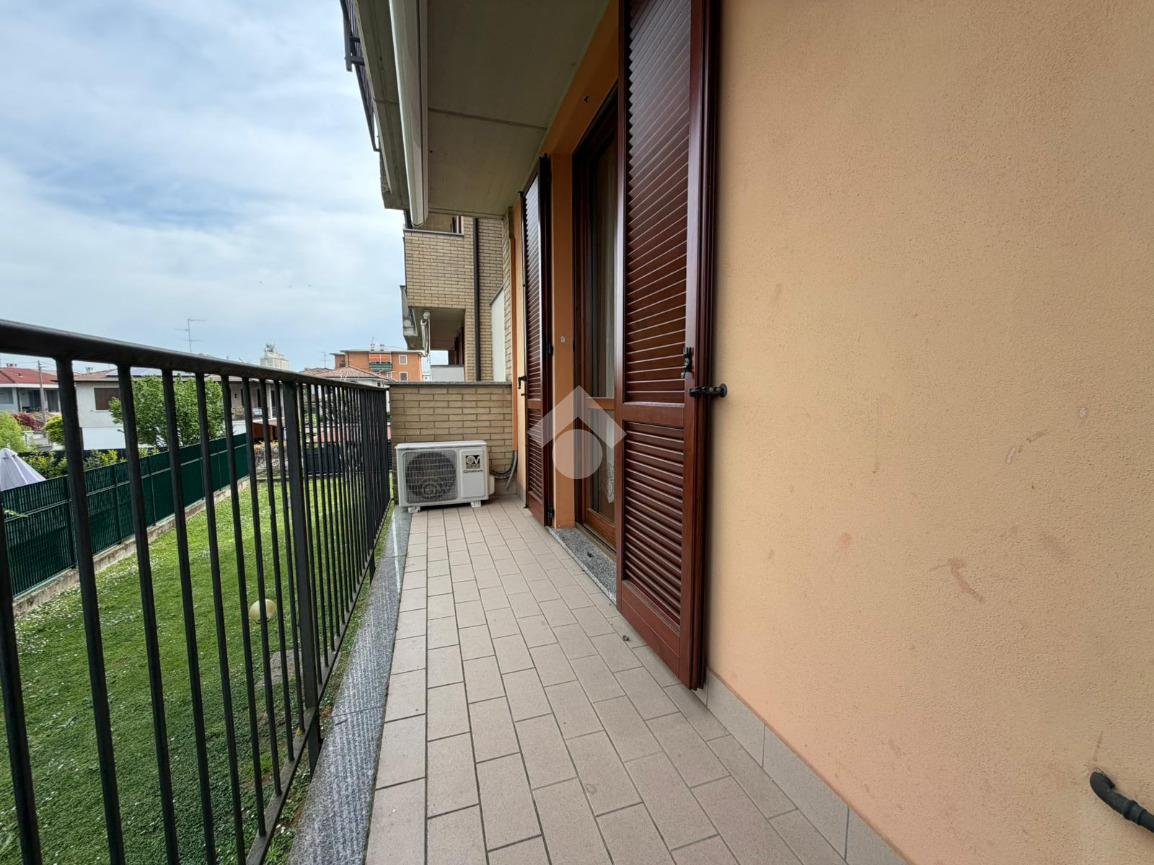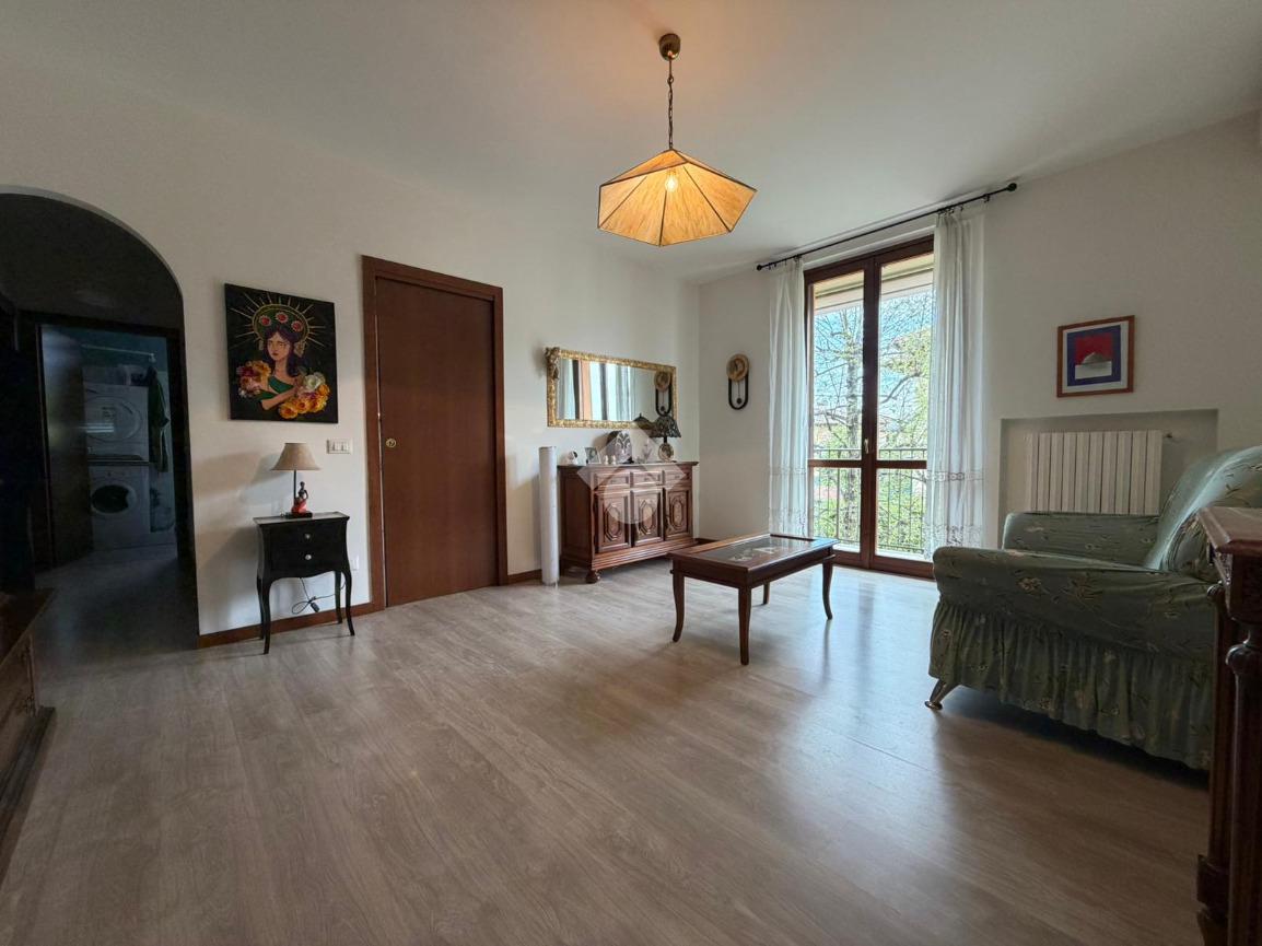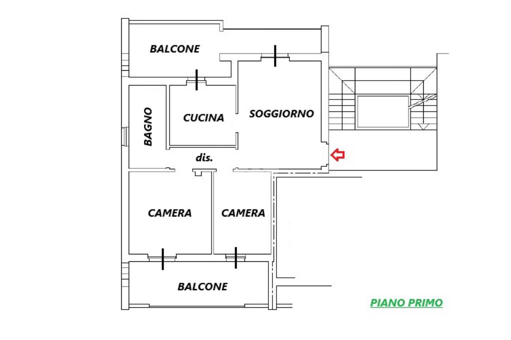 L'appartamento, di 72 mq, si trova al primo piano della palazzina, edificata nel 2003. L'ingresso si apre sulla zona giorno, composta da soggiorno e cucina abitabile. Il disimpegno serve la zona notte, suddivisa in due camere da letto e bagno sia con vasca sia con doccia. L'abitazione dispone di due balconi: il primo di 15 mq con esposizione a nord e accessibile dalla zona giorno, mentre il secondo di 13 mq ha esposizione a sud ed è accessibile dalle due camere da letto.