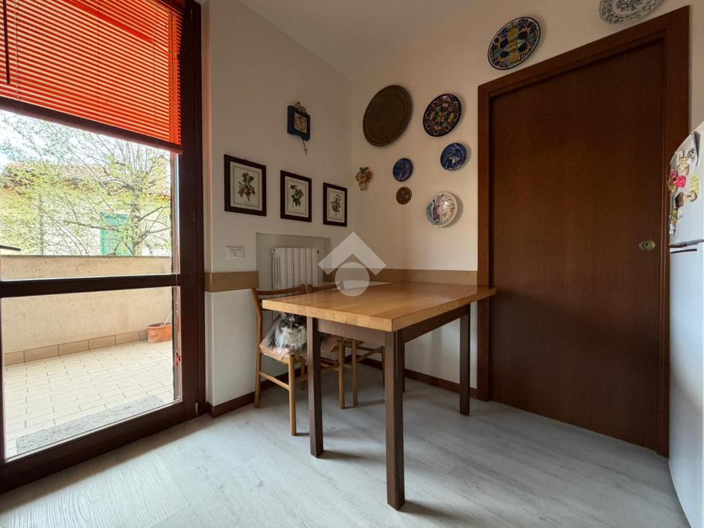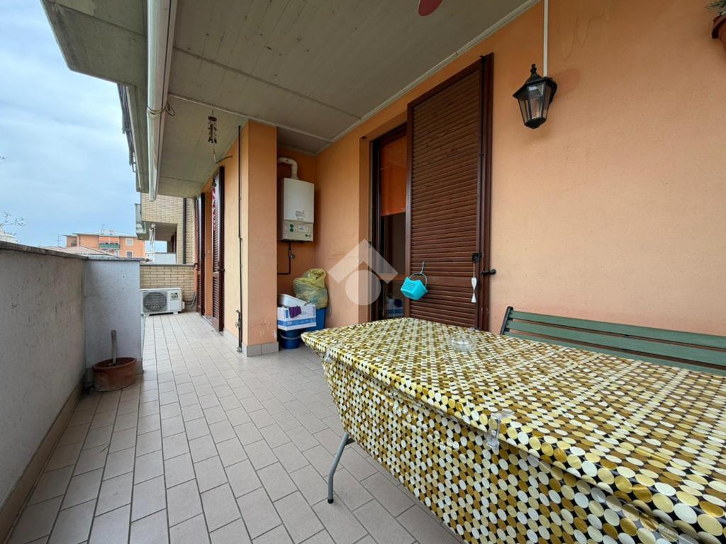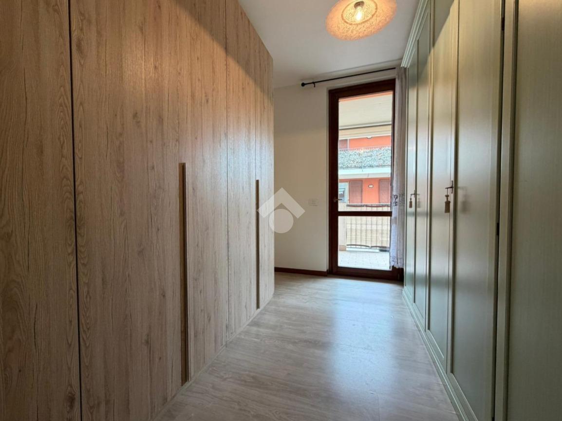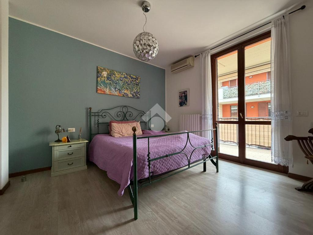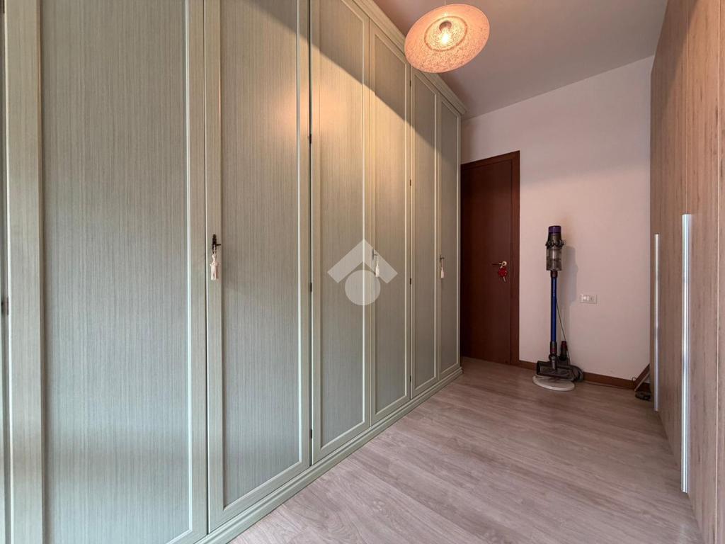 L'appartamento, di 72 mq, si trova al primo piano della palazzina, edificata nel 2003. L'ingresso si apre sulla zona giorno, composta da soggiorno e cucina abitabile. Il disimpegno serve la zona notte, suddivisa in due camere da letto e bagno sia con vasca sia con doccia. L'abitazione dispone di due balconi: il primo di 15 mq con esposizione a nord e accessibile dalla zona giorno, mentre il secondo di 13 mq ha esposizione a sud ed è accessibile dalle due camere da letto.