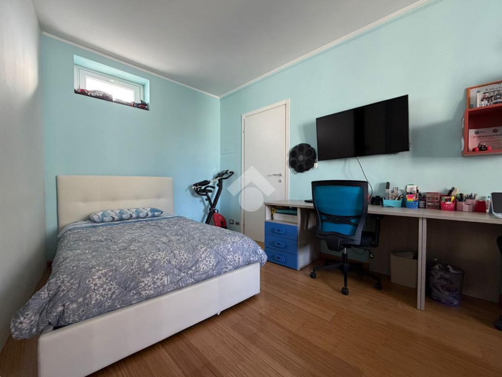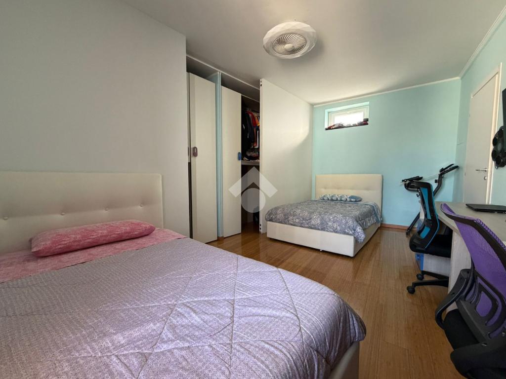Al piano primo troviamo la zona notte, suddivisa in ampio disimpegno e due camere da letto matrimoniali, di cui una con ripostiglio ad uso cabina armadio e la seconda con accesso al balcone di 5 mq.