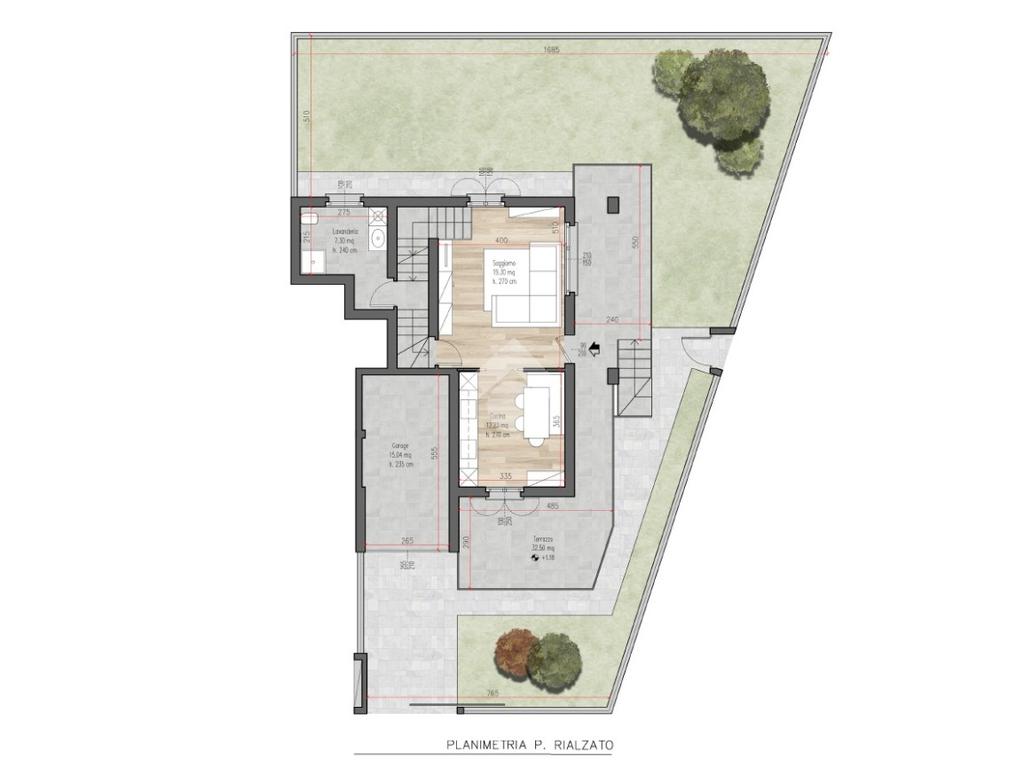 Completano la proprietà il terrazzo d'ingresso di 32 mq, il box singolo e l'ampia area esterna di 148 mq su tre lati.