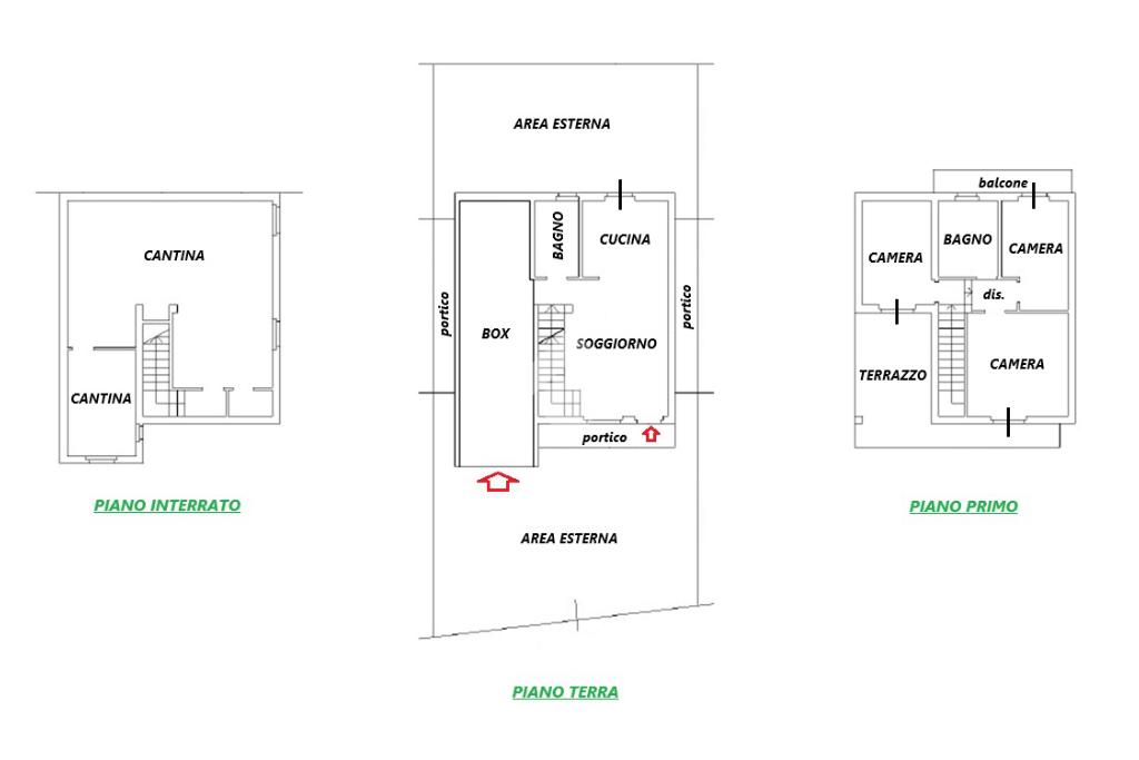 La proprietà è completata da area esterna privata di circa 120 mq, posta fronte e retro, e due portici di 6 mq ciascuno posti ai lati dell'abitazione.