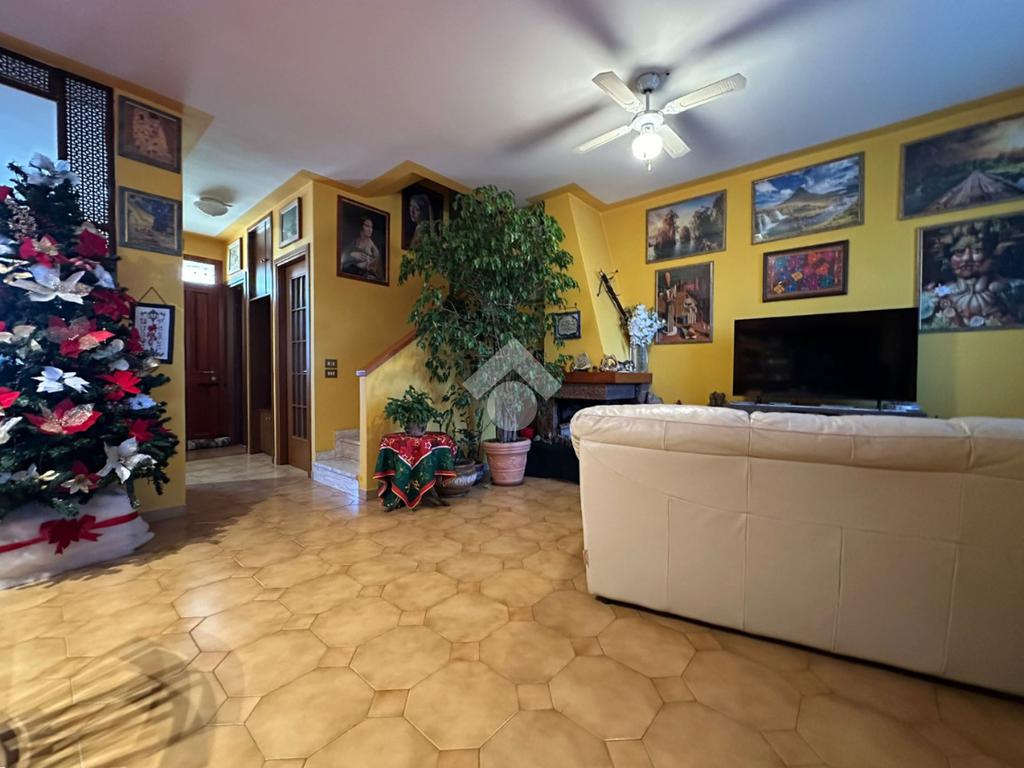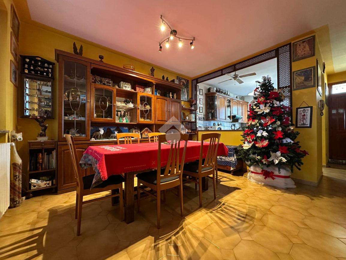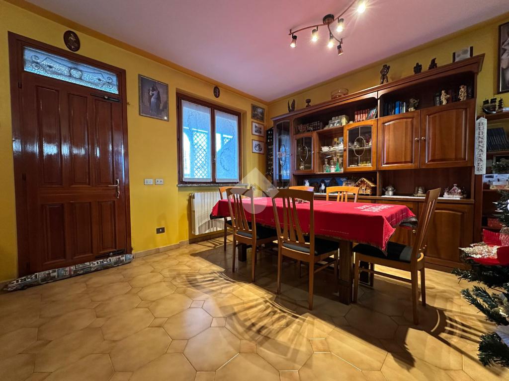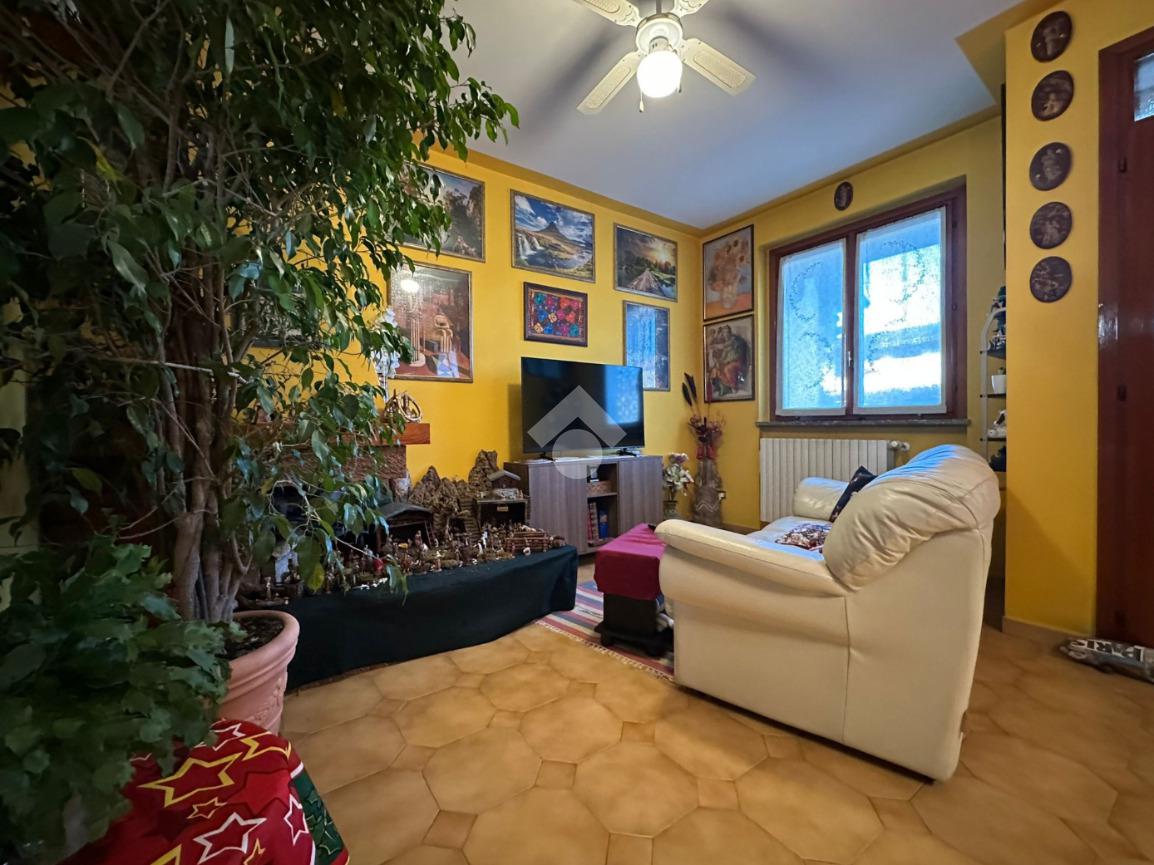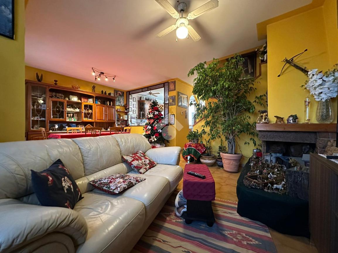 L'abitazione, di 115 mq, si sviluppa al piano rialzato e al piano primo. L'ingresso si apre sulla zona giorno, composta da un ampio soggiorno con camino, cucina abitabile e bagno di servizio. La zona notte si trova al piano primo, suddiviso in disimpegno, tre camere da letto e bagno con doccia.