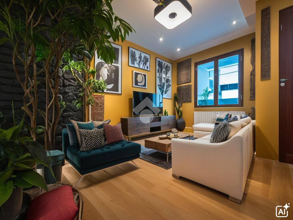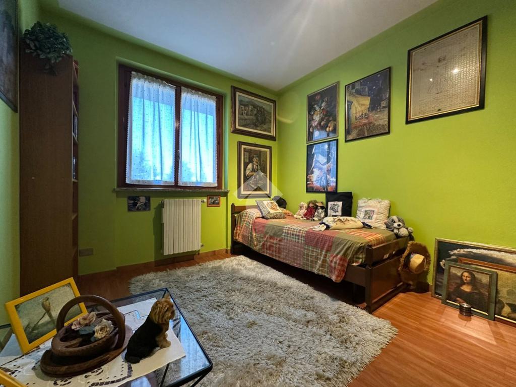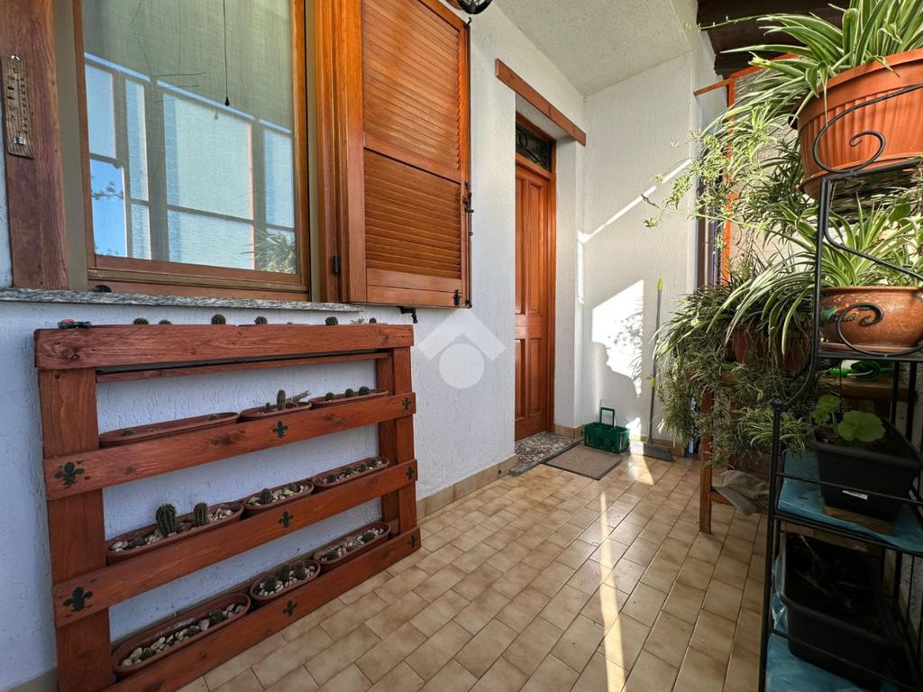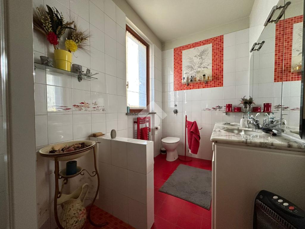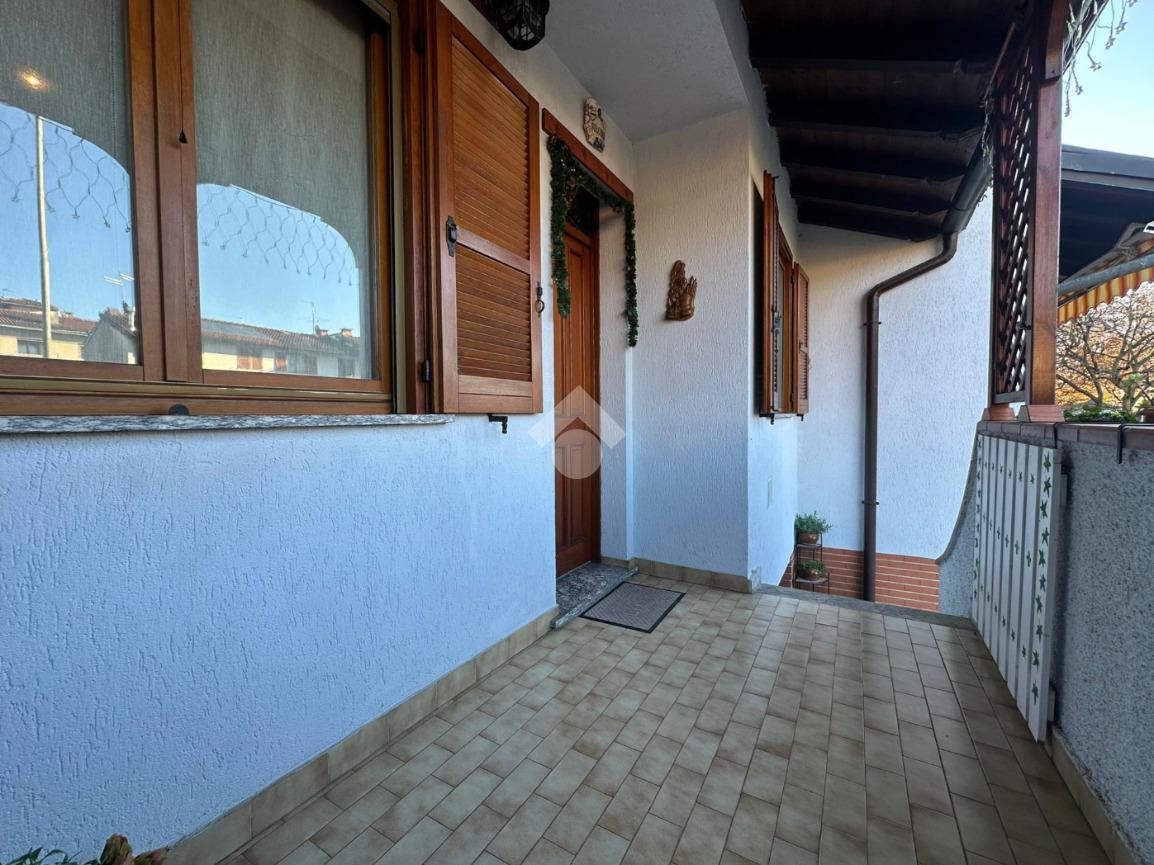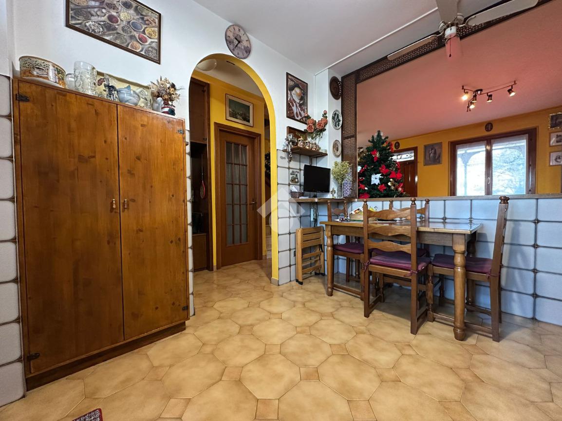L'abitazione, di 115 mq, si sviluppa al piano rialzato e al piano primo. L'ingresso si apre sulla zona giorno, composta da un ampio soggiorno con camino, cucina abitabile e bagno di servizio. La zona notte si trova al piano primo, suddiviso in disimpegno, tre camere da letto e bagno con doccia.